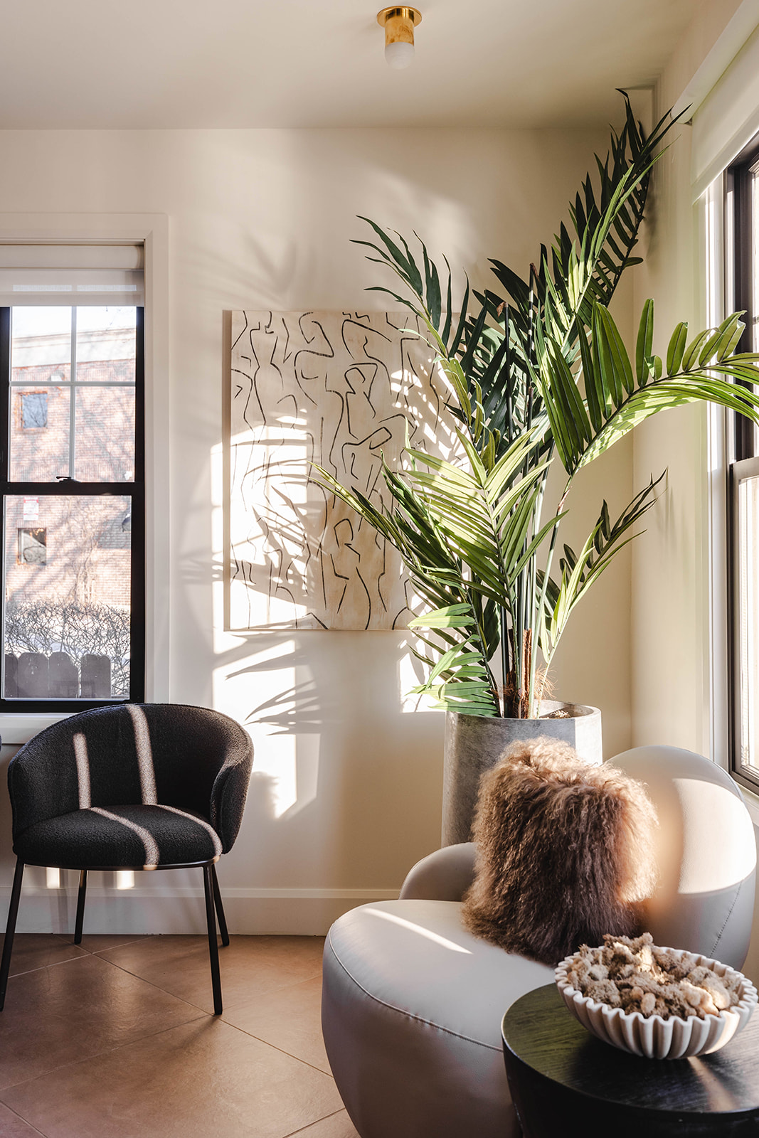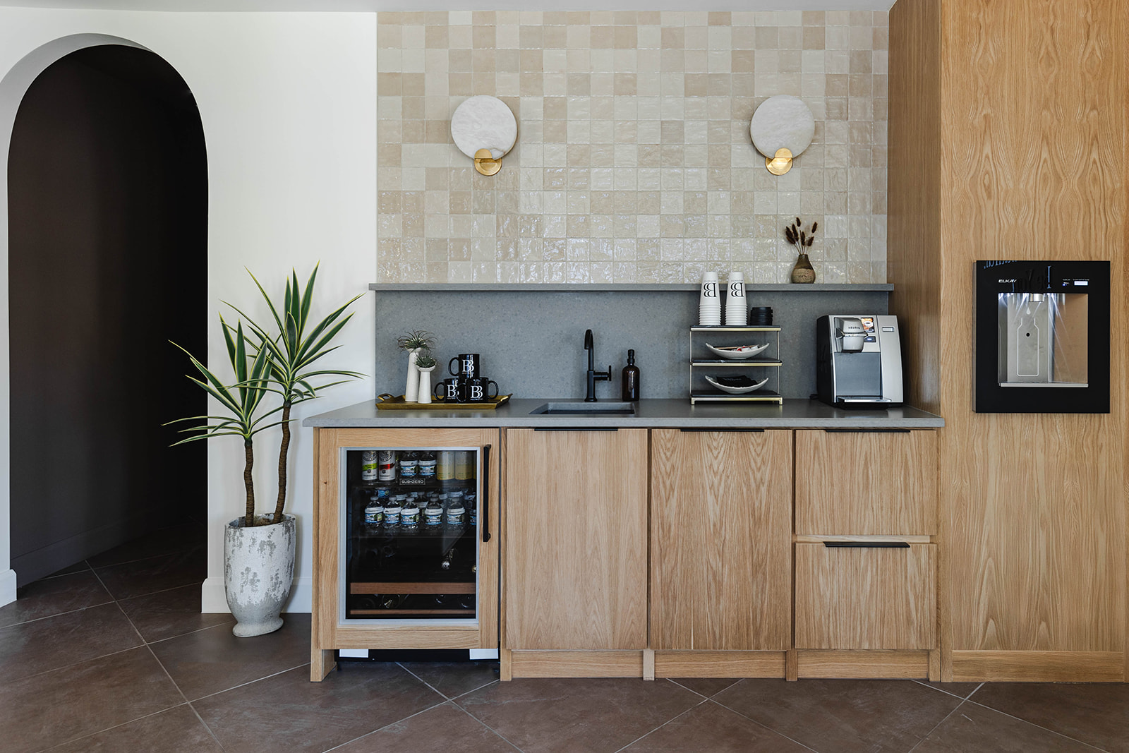 Audria and Kellyann designed a welcoming entrance space marrying organic luxury with modern wellness. Earth-toned neutrals and natural textures ground the environment, creating a calm, inviting atmosphere, while architectural design elements add a curated edge to the space. Their goal was to create a serene sanctuary that is both clean, comforting and unapologetically chic at the same time.