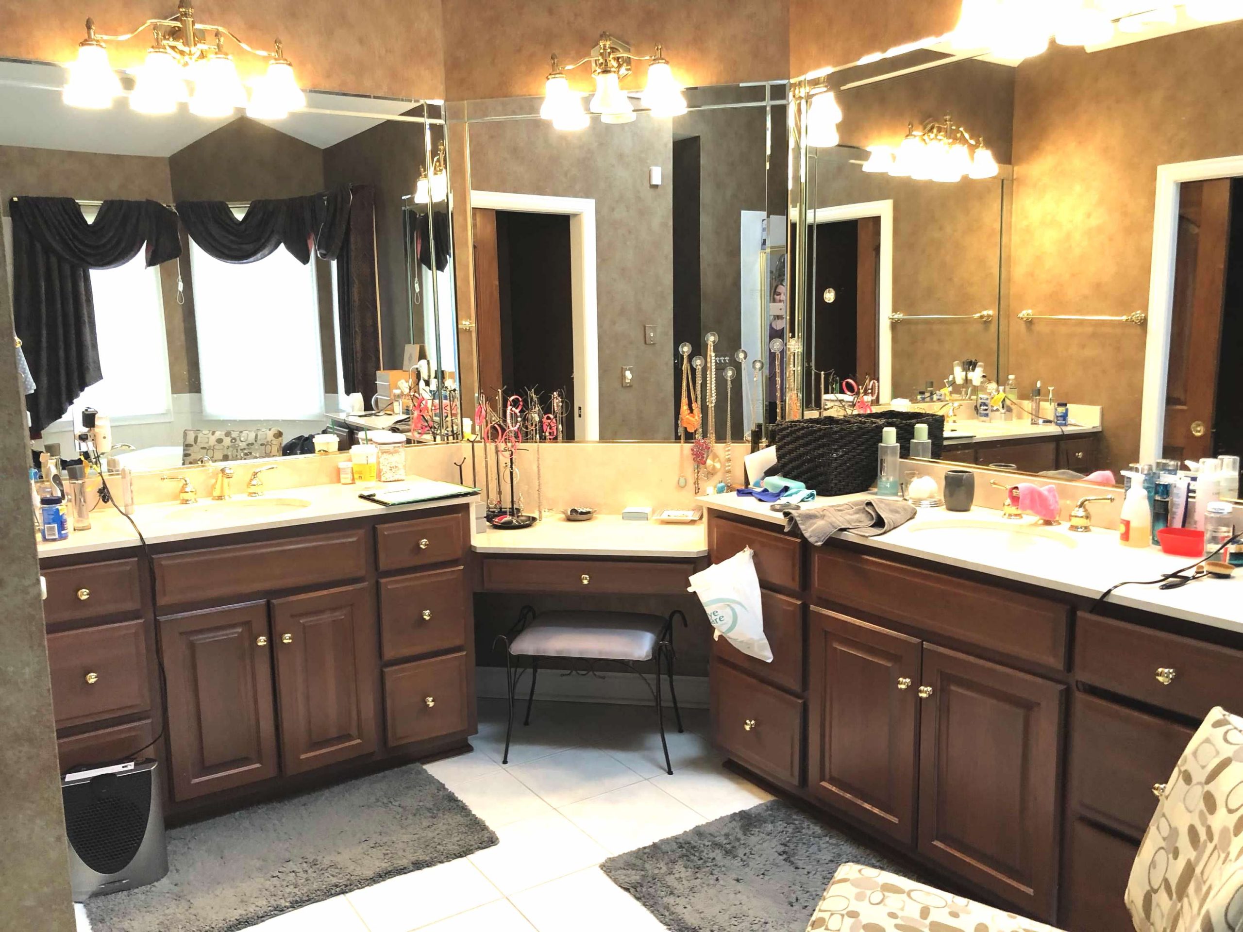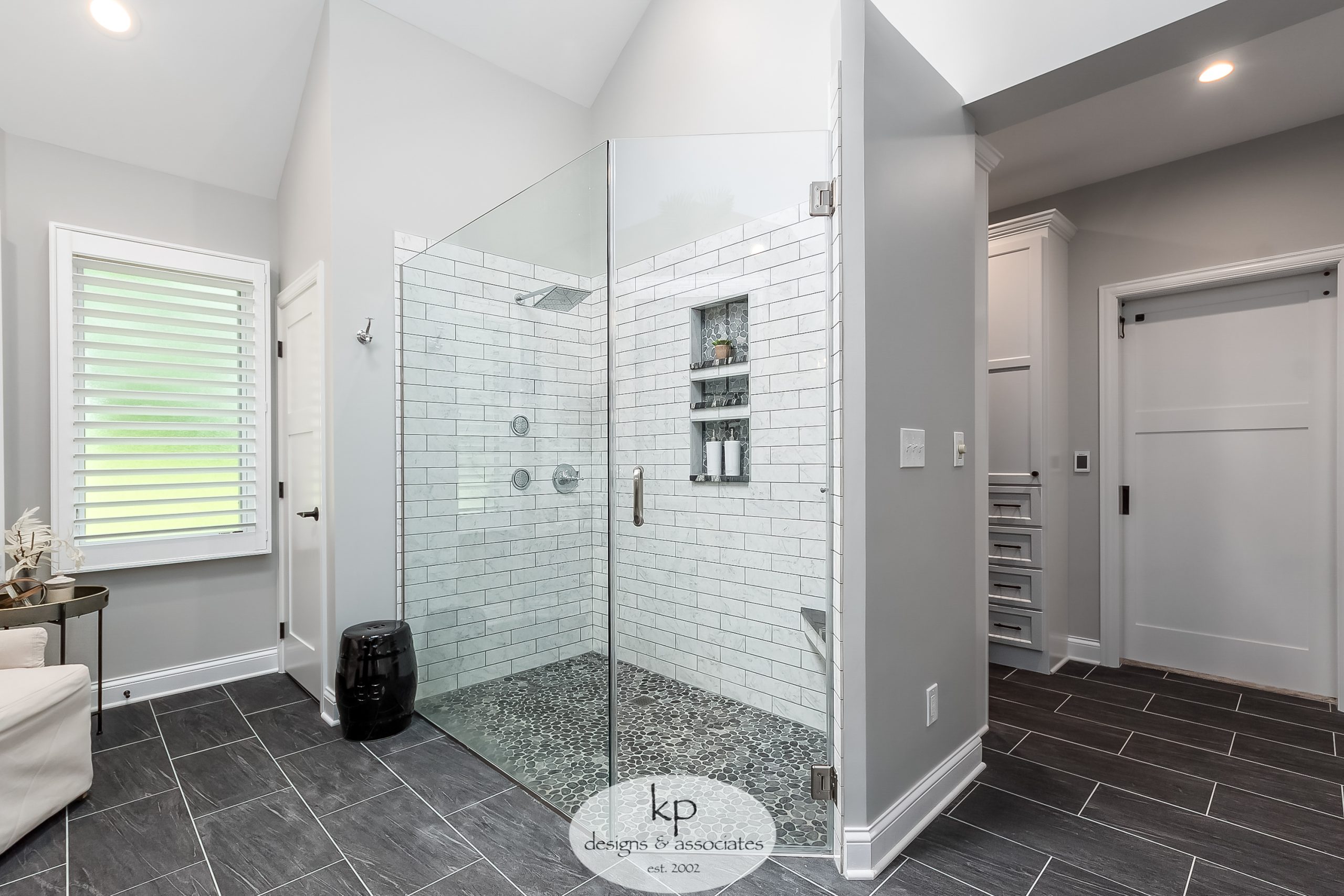 The client wanted to update the outdated bathroom with a classic modern design. We created a new entrance to the master bathroom in this complete remodel, making more room for the expansive closets and dressing area.