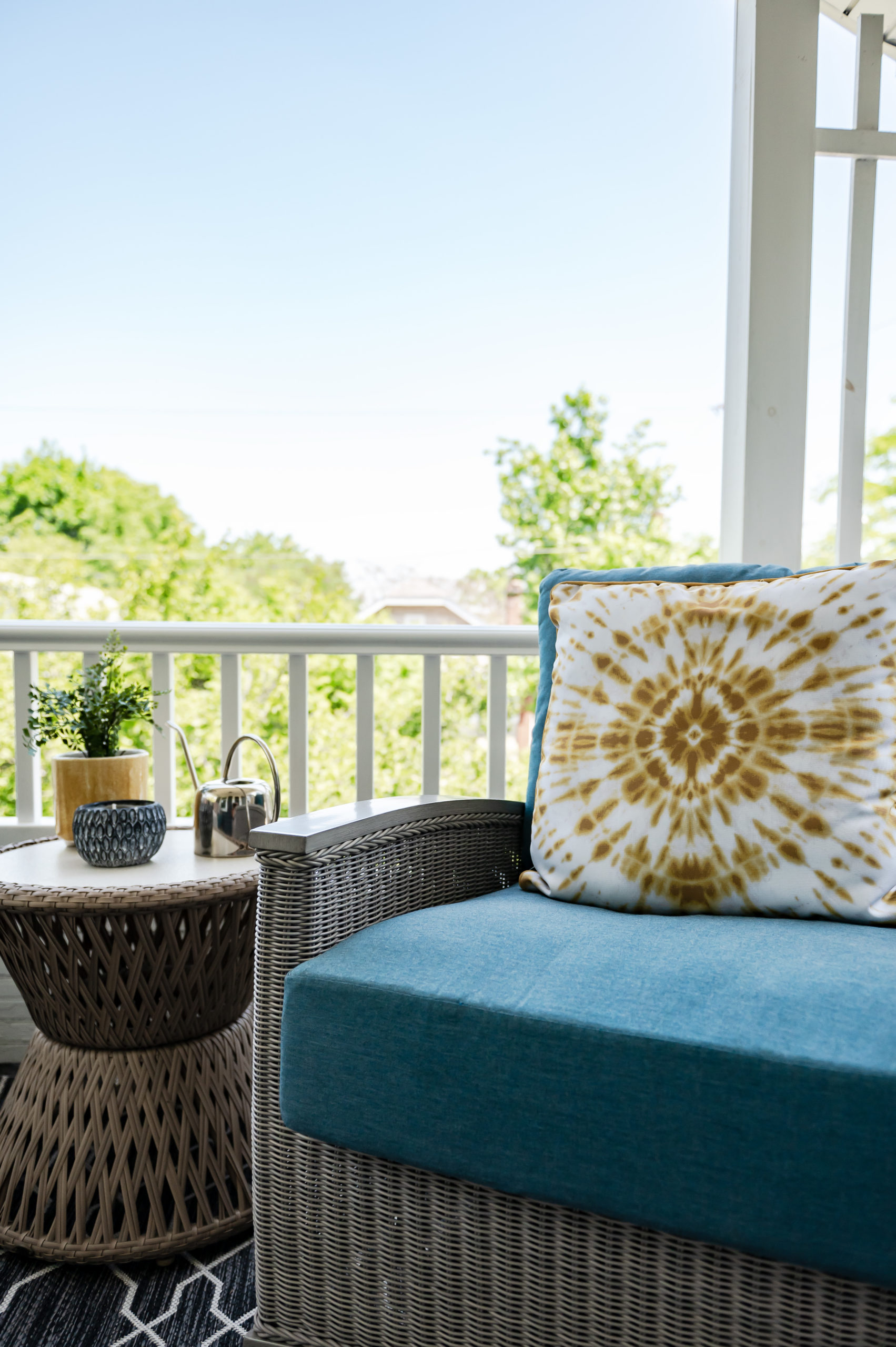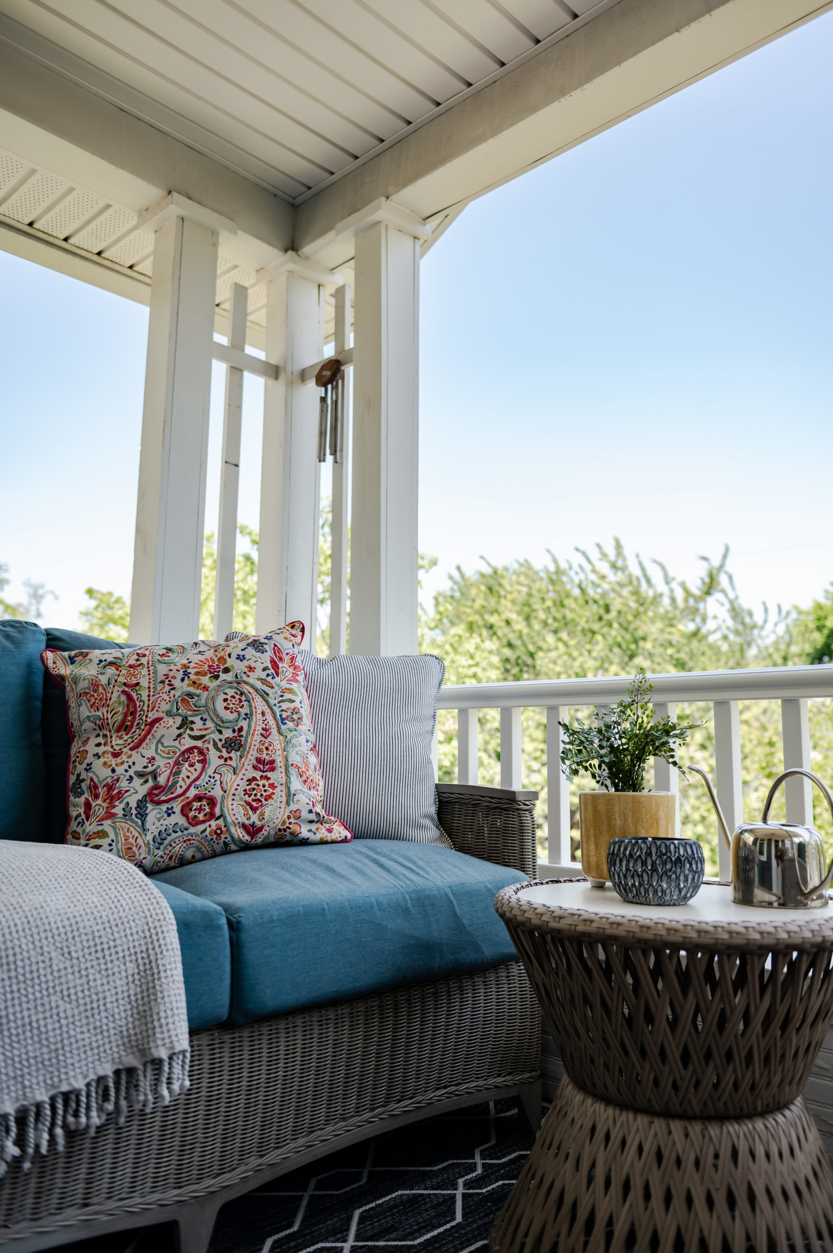 Small but mighty, Erica utilized every inch of this outdoor space to allow for a relaxing spot to enjoy in the warmer weather. Featuring comfortable woven furniture and bright colors, this balcony now has a personality that matches the rest of the home!
