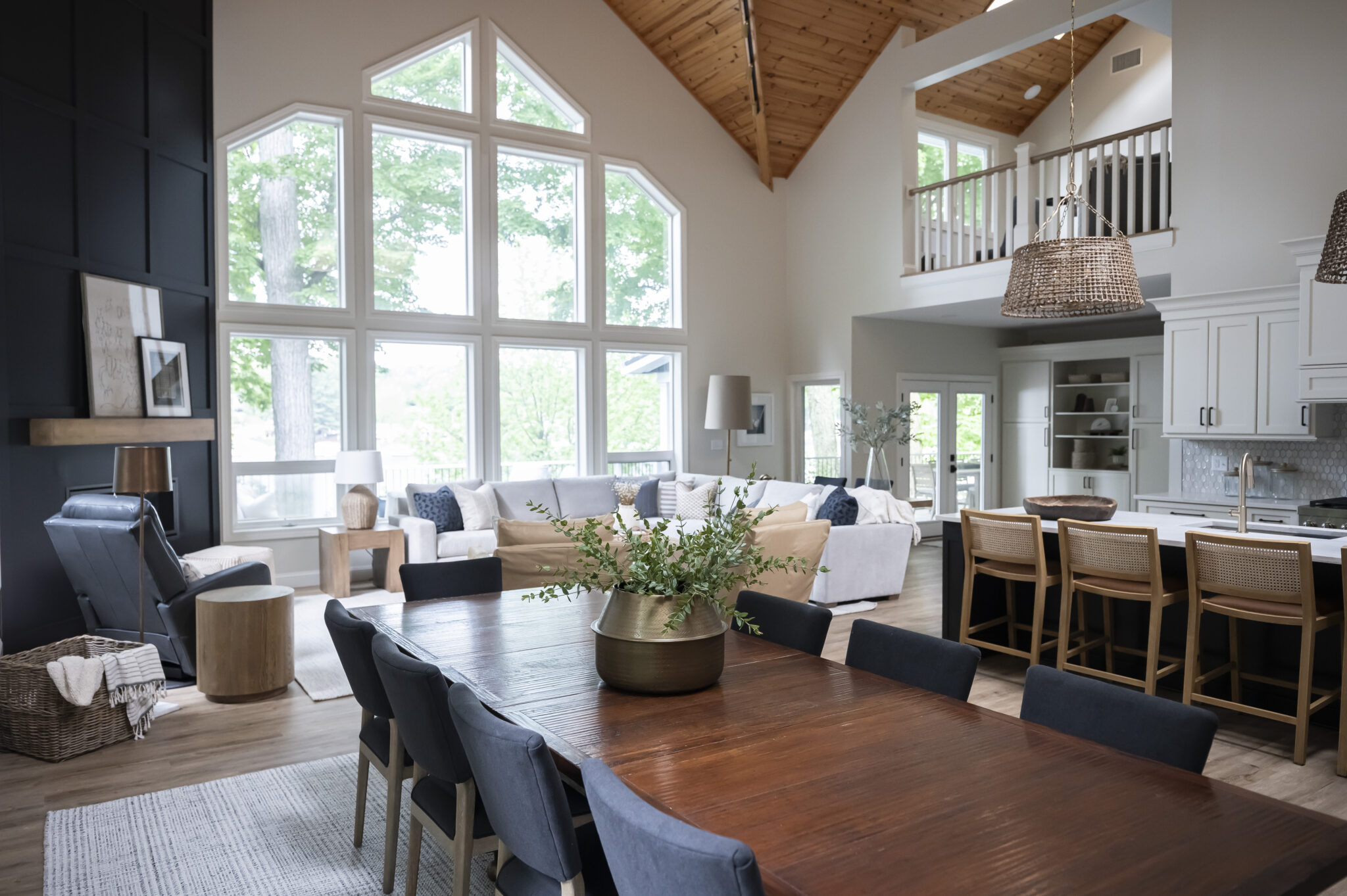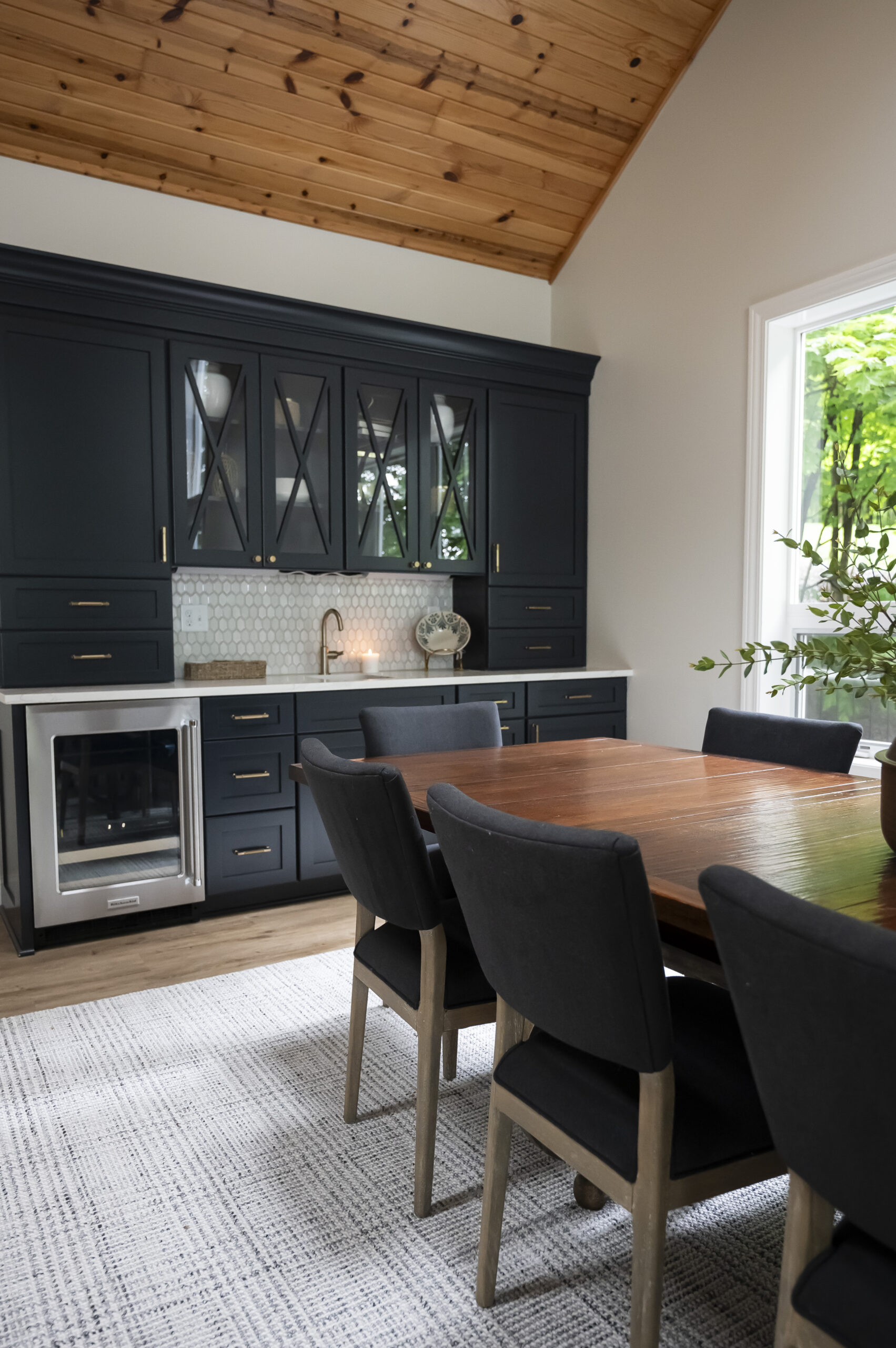 We received an SOS call from our clients who were in the middle of renovating their Apple Valley cottage that has been in the family for generations, but had seen better days. It was no longer meeting their large family’s needs for space and function. The homeowners contacted us during the renovation process and were overwhelmed with selections and deadlines. They were running into a time crunch issue to be ready for the next lake season. We were able to step in and immediately provide solutions and create a plan to complete construction, furnishings and décor on time. The new kitchen design opened up the layout for us to be able to incorporate plenty of seating around the new island and dining table for family gatherings. We were able to define the different areas with the furniture layout and area rugs while still keeping the space open for all to enjoy. It was important to make each space functional with the focus on the beautiful views. We were able to maximize the furniture layout using custom oversized furnishings to accommodate their large family gatherings. The new patio addition provided extended living space that this family did not have prior to the renovation. And now there is plenty of outdoor space to gather and dine.