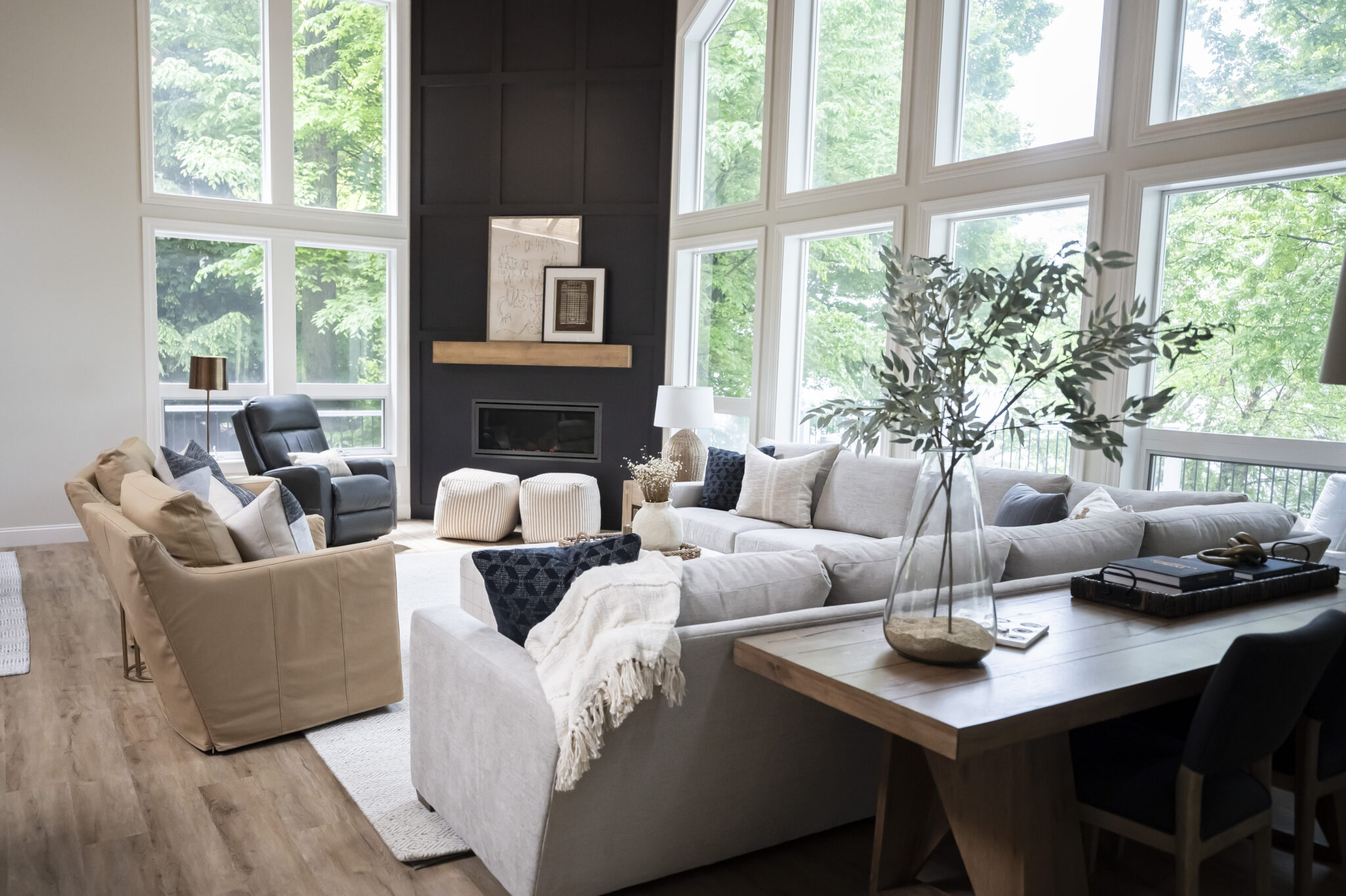 We received an SOS call from our clients who were in the middle of renovating their Apple Valley cottage that has been in the family for generations, but had seen better days. It was no longer meeting their large family’s needs for space and function. The homeowners contacted us during the renovation process and were overwhelmed with selections and deadlines. They were running into a time crunch issue to be ready for the next lake season. We were able to step in and immediately provide solutions and create a plan to complete construction, furnishings and décor on time. The new kitchen design opened up the layout for us to be able to incorporate plenty of seating around the new island and dining table for family gatherings. We were able to define the different areas with the furniture layout and area rugs while still keeping the space open for all to enjoy. It was important to make each space functional with the focus on the beautiful views. We were able to maximize the furniture layout using custom oversized furnishings to accommodate their large family gatherings. The new patio addition provided extended living space that this family did not have prior to the renovation. And now there is plenty of outdoor space to gather and dine.