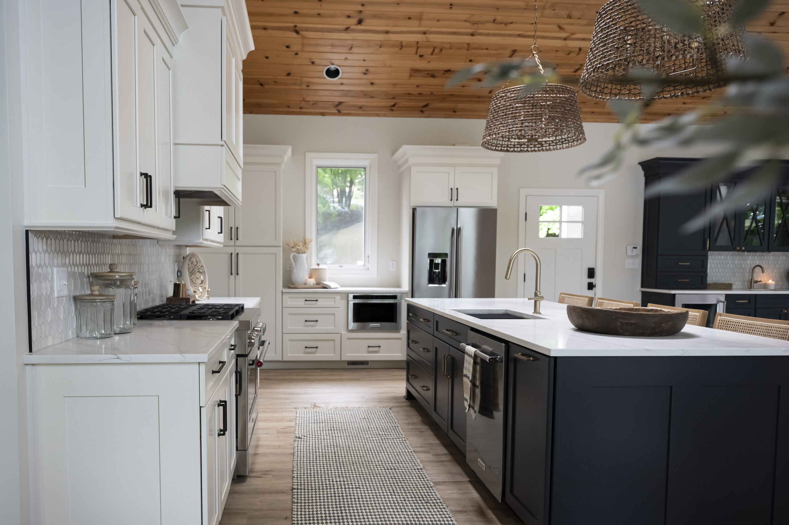 We received an SOS call from our clients who were in the middle of renovating their Apple Valley cottage that has been in the family for generations, but had seen better days. It was no longer meeting their large family’s needs for space and function. The homeowners contacted us during the renovation process and were overwhelmed with selections and deadlines. They were running into a time crunch issue to be ready for the next lake season. We were able to step in and immediately provide solutions and create a plan to complete construction, furnishings and décor on time. The new kitchen design opened up the layout for us to be able to incorporate plenty of seating around the new island and dining table for family gatherings. We were able to define the different areas with the furniture layout and area rugs while still keeping the space open for all to enjoy. It was important to make each space functional with the focus on the beautiful views. We were able to maximize the furniture layout using custom oversized furnishings to accommodate their large family gatherings. The new patio addition provided extended living space that this family did not have prior to the renovation. And now there is plenty of outdoor space to gather and dine.