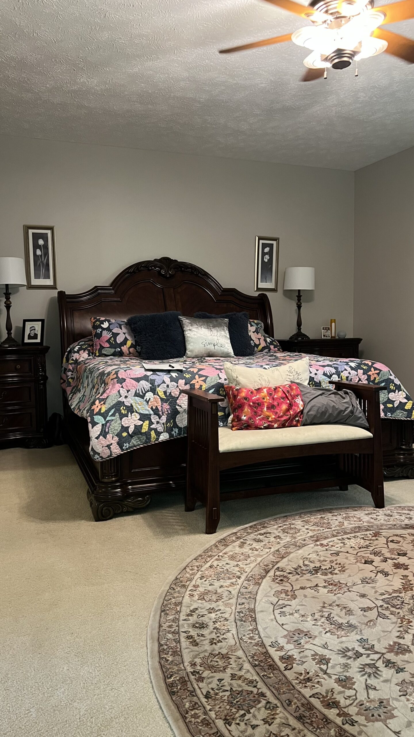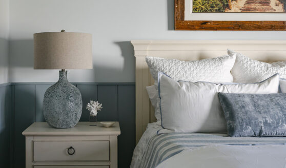 Audria and Holly implemented a few unique qualities to their client’s bedroom: a vapor fireplace and a hidden laundry room to bring convenience into their daily chores. They chose to make a bold statement with wallpaper and lighting. Layering in one of a kind furniture pieces that make statements on their own brought dimension and interest into the space, ensuring every part of the room had ‘wow’ factor.