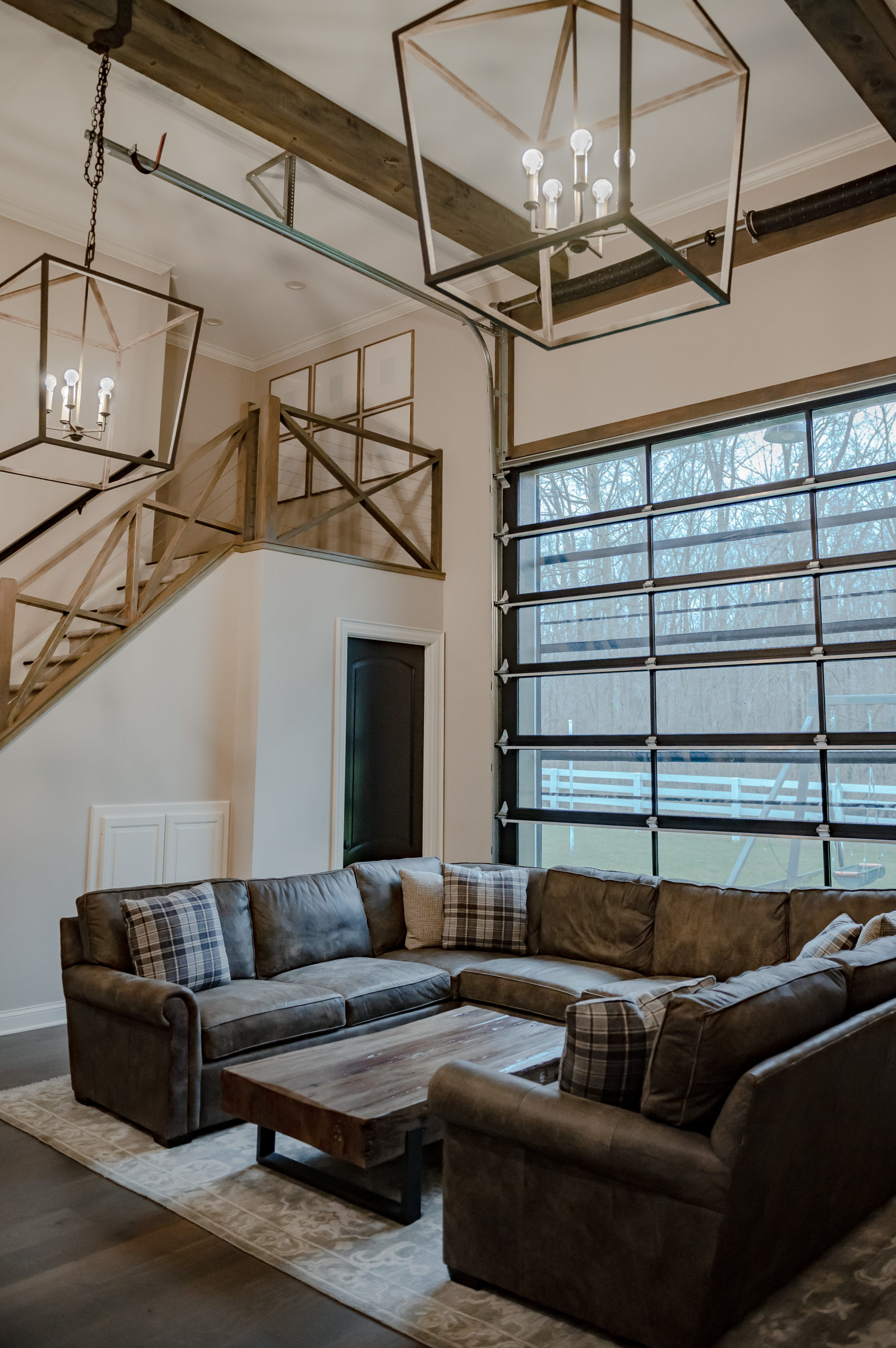 The homeowner asked for a room where their family and friends could get together and have fun. Emily worked with Casino & Co Renovations to give this room some character with the addition of the stairs. They also took out the heavy barn door and added a glass garage door that can be opened during the summer and added a screen so when the door is open the bugs don’t come in!