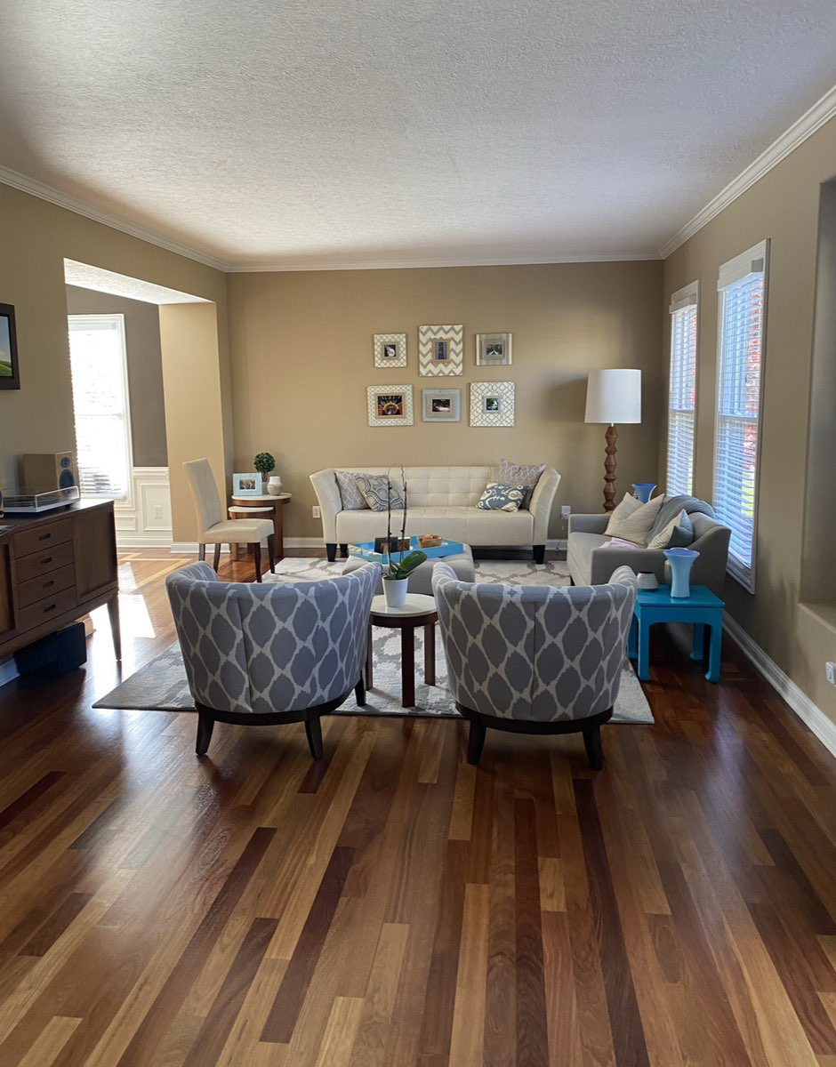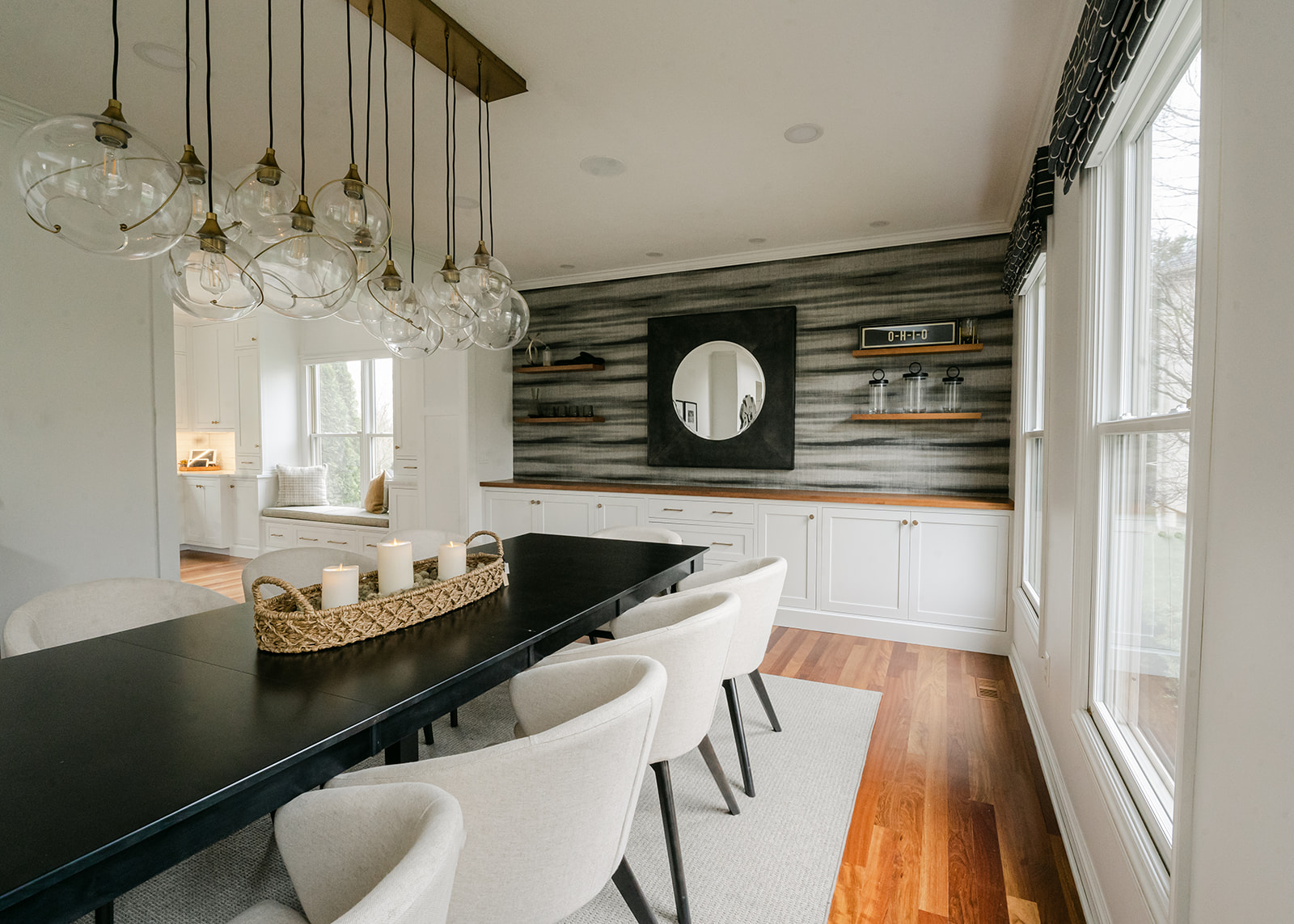 into a functional dining room! Complete with a custom buffet for wine storage and entertaining and seating for ten