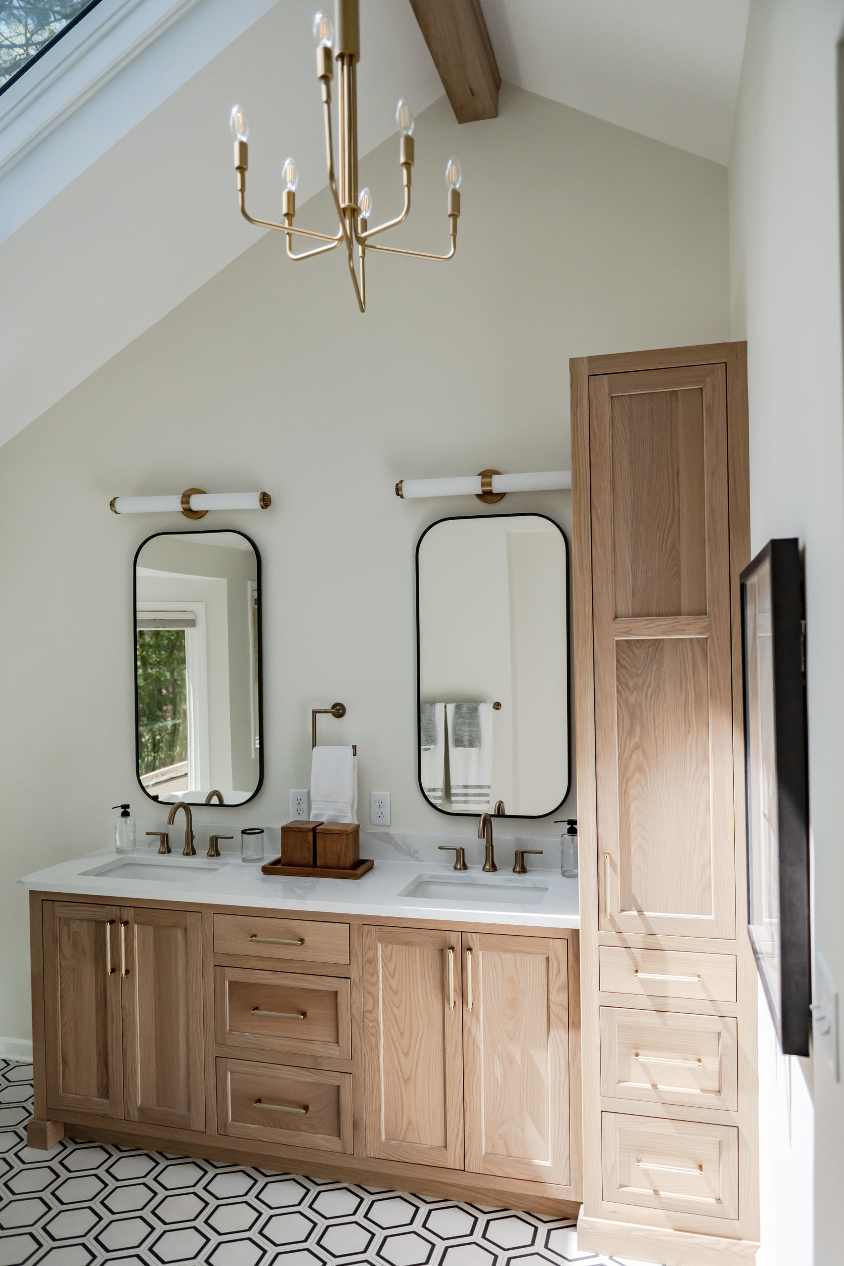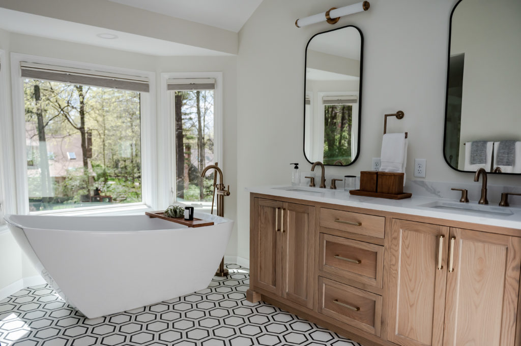 This bathroom was dated, and had a shower space that was too small and didn’t function well. Celeste rearranged the space to give her client a much larger shower, and updated all the finishes with a much fresher look! Captured by
