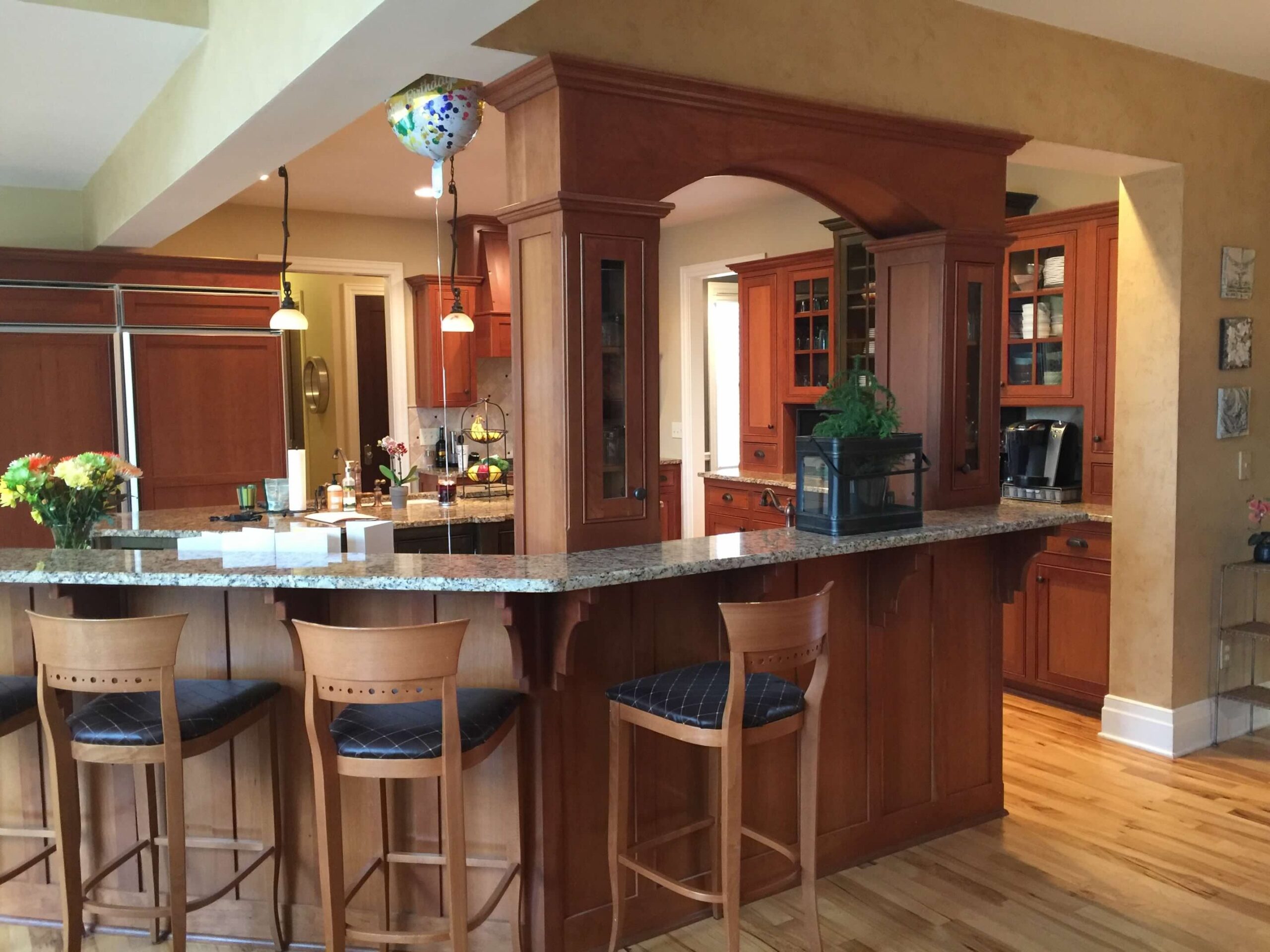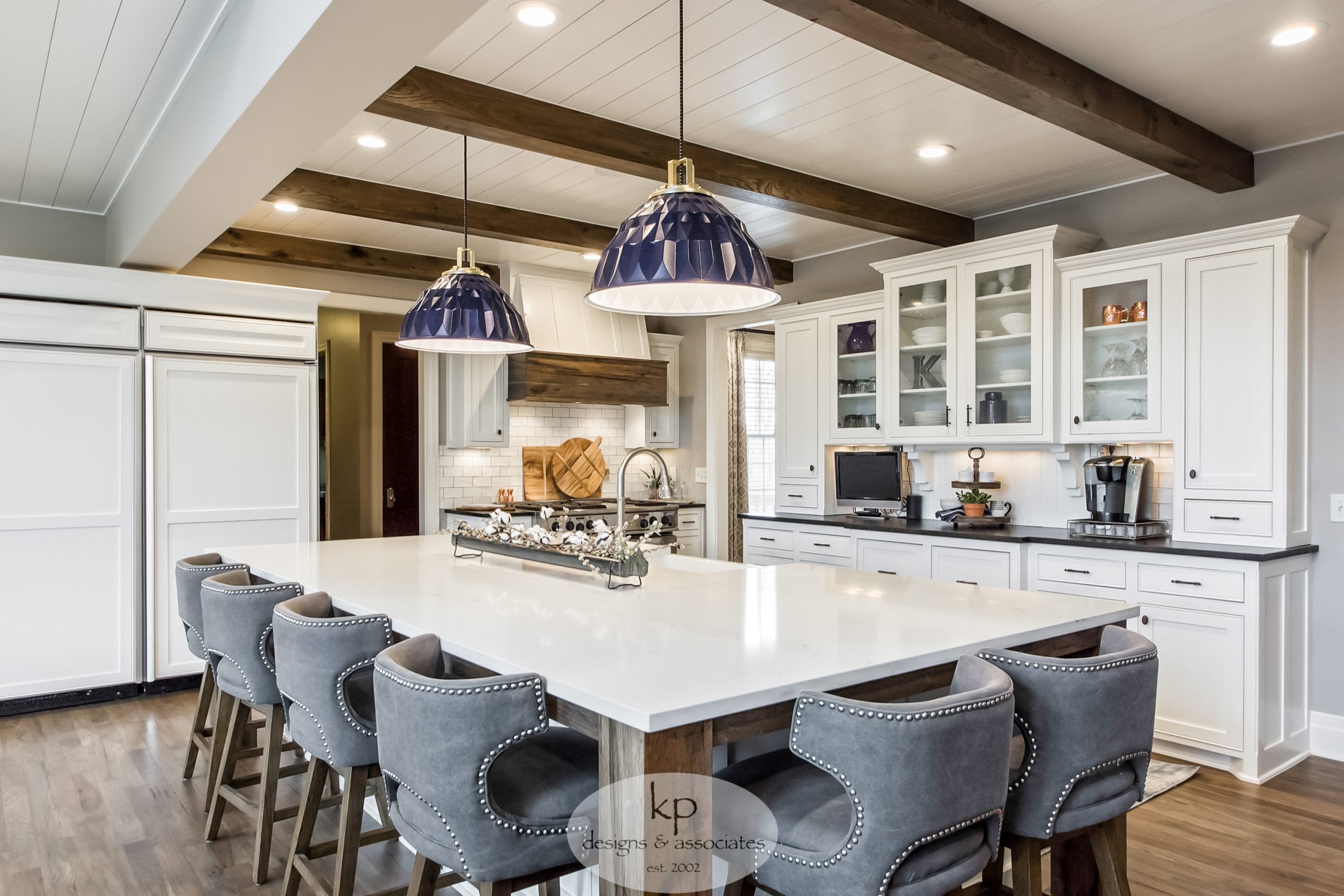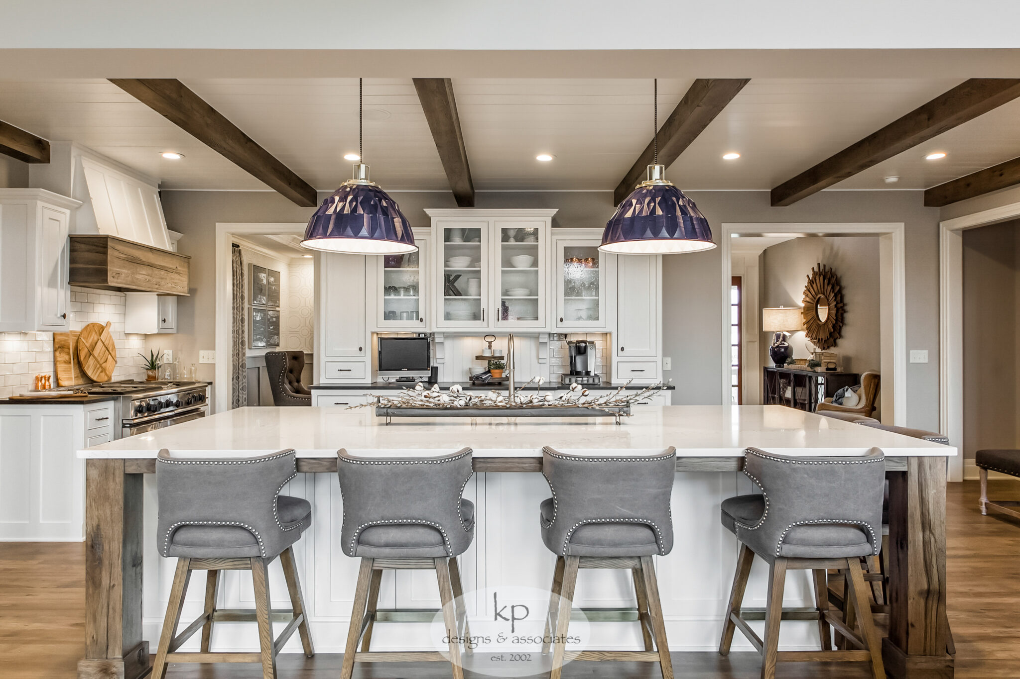 The client wanted to gut and remodel the kitchen to an updated design. With rustic modern design elements in mind, we restructured the whole kitchen. First, we removed the walls to open up the area and added new appliances and cabinets. From there, we updated the countertops, backsplash, and lighting. Finally, we installed beams and shiplap to the kitchen ceiling and brought in new furniture and window treatments. We also updated the kitchen flooring.