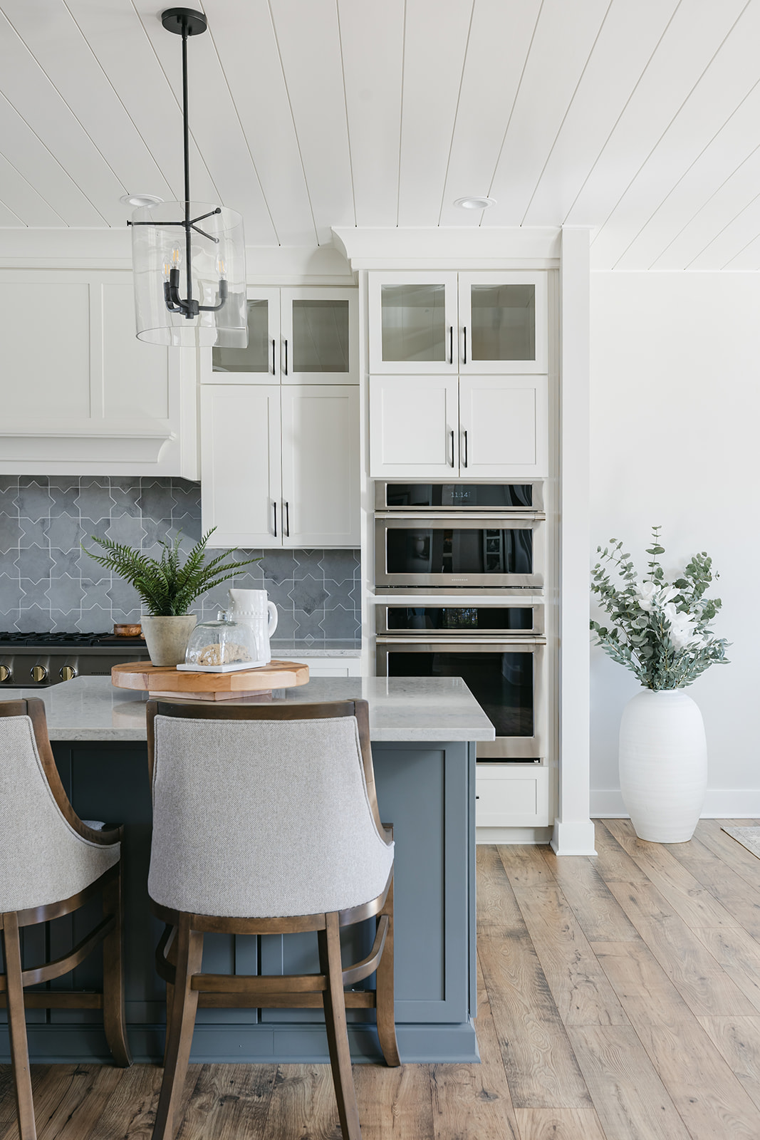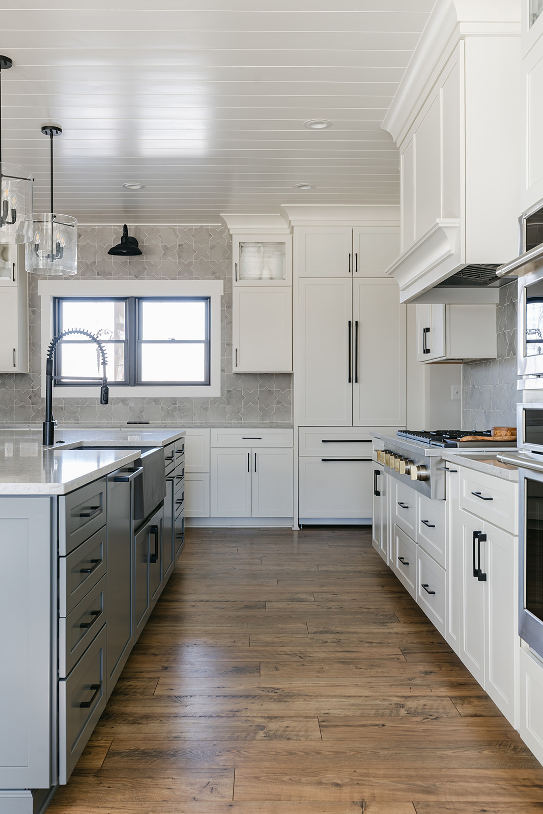 Seamlessly blending rustic charm with modern functionality, this project involves the design and construction of a 3100 square foot modern farmhouse-style ranch home. Situated in a rural setting among the trees, The Hickory emphasizes open-concept living, natural materials, and cozy furnishings. The architectural vision centers around classic farmhouse elements. The clients envisioned a custom home that serves as a peaceful retreat between their travels and a welcoming hub for entertaining family and friends. Their objective was to create a thoughtfully designed residence that balances comfort, functionality, and timeless charm. As avid travelers they wanted their heirlooms and experiences to be showcased throughout each room. Captured by Ramsey Baker Photography. Special thanks to Price Custom Homes, Capital Lighting, Visual Comfort, Signature Cabinetry, and America’s Floor Source.