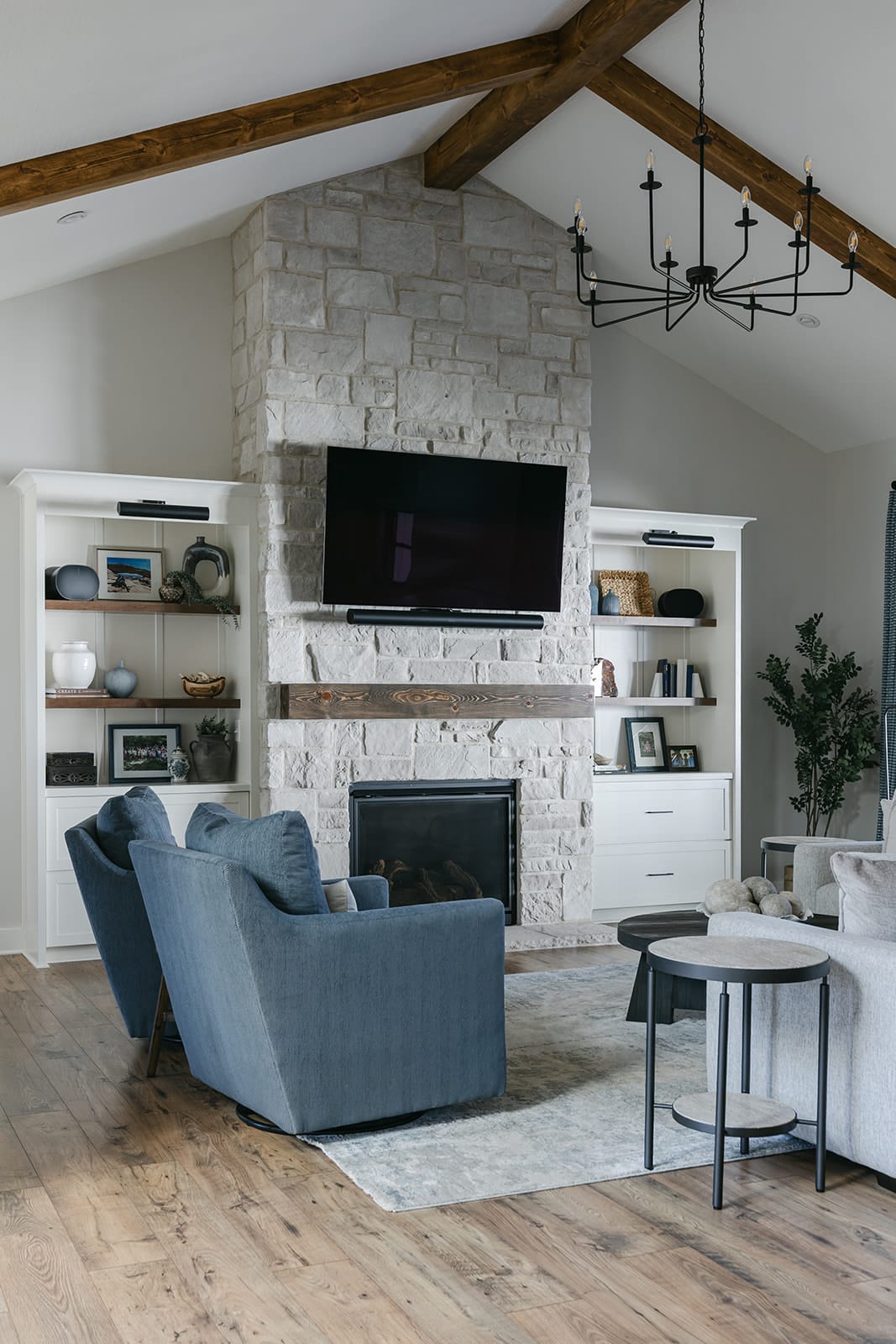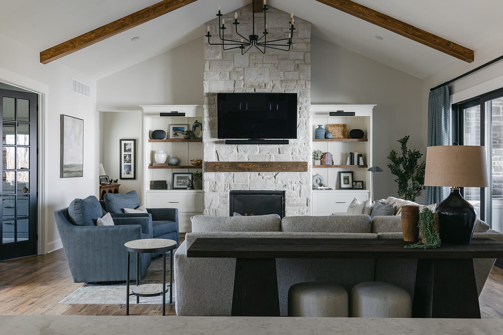 Seamlessly blending rustic charm with modern functionality, this project involves the design and construction of a 3100 square foot modern farmhouse-style ranch home. Situated in a rural setting among the trees, The Hickory emphasizes open-concept living, natural materials, and cozy furnishings. The architectural vision centers around classic farmhouse elements. The clients envisioned a custom home that serves as a peaceful retreat between their travels and a welcoming hub for entertaining family and friends. Their objective was to create a thoughtfully designed residence that balances comfort, functionality, and timeless charm. As avid travelers they wanted their heirlooms and experiences to be showcased throughout each room.