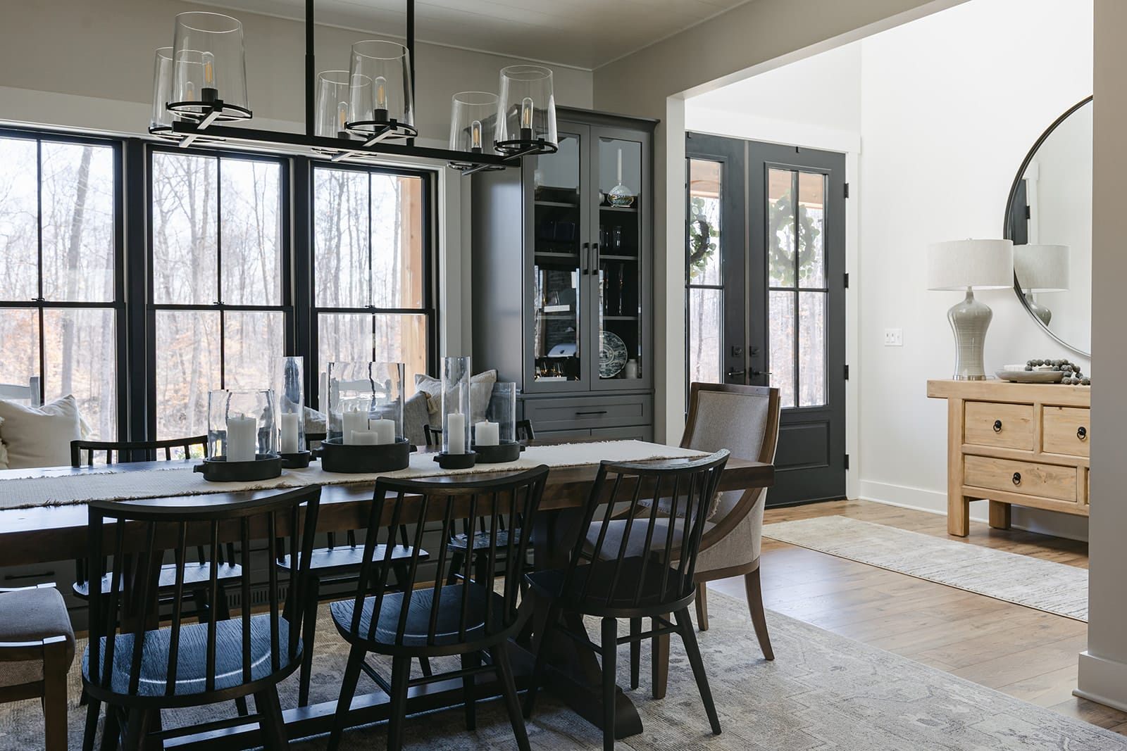 Seamlessly blending rustic charm with modern functionality, this project involves the design and construction of a 3100 square foot modern farmhouse-style ranch home. Situated in a rural setting among the trees, The Hickory emphasizes open-concept living, natural materials, and cozy furnishings. The architectural vision centers around classic farmhouse elements. The clients envisioned a custom home that serves as a peaceful retreat between their travels and a welcoming hub for entertaining family and friends. Their objective was to create a thoughtfully designed residence that balances comfort, functionality, and timeless charm. As avid travelers they wanted their heirlooms and experiences to be showcased throughout each room.
