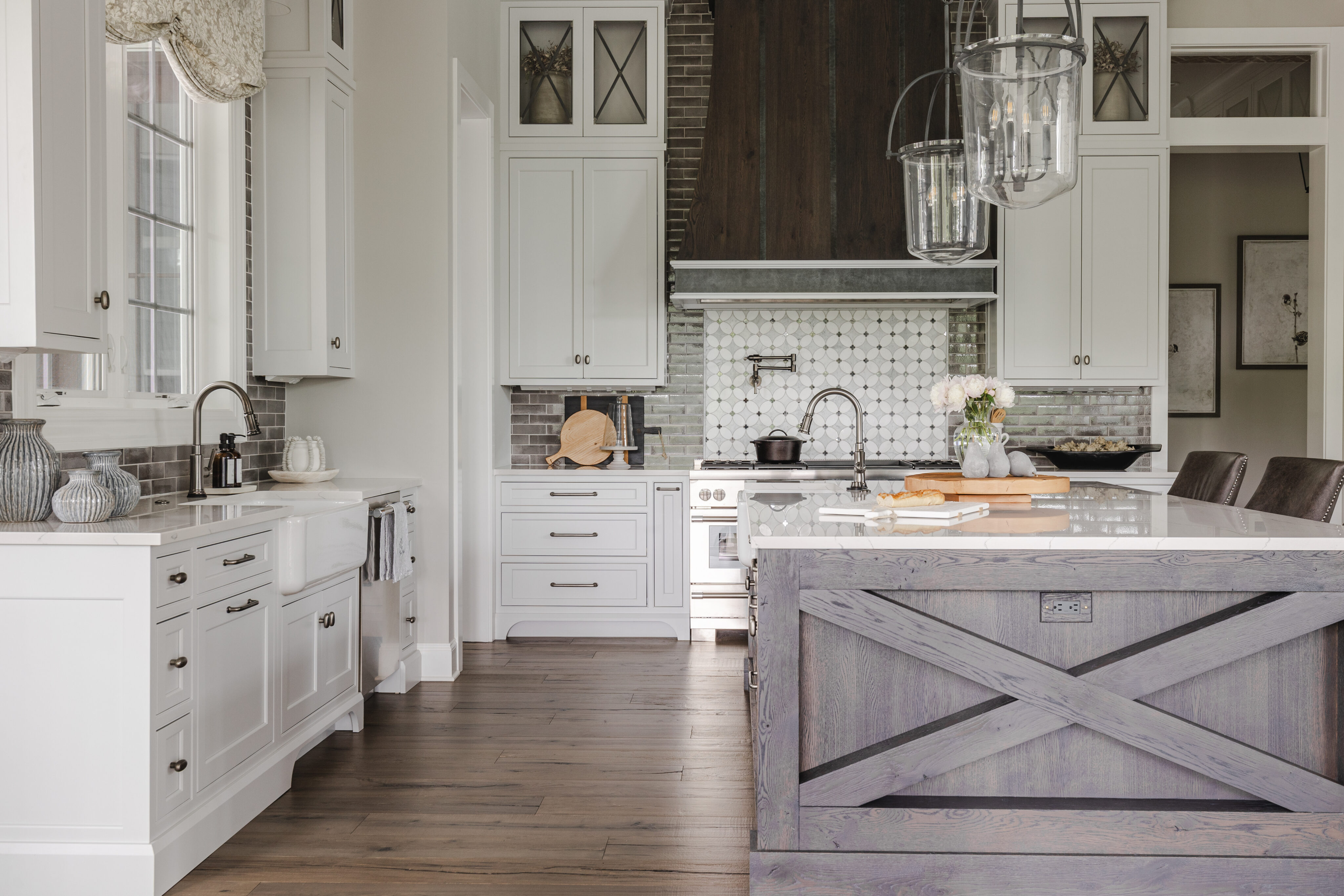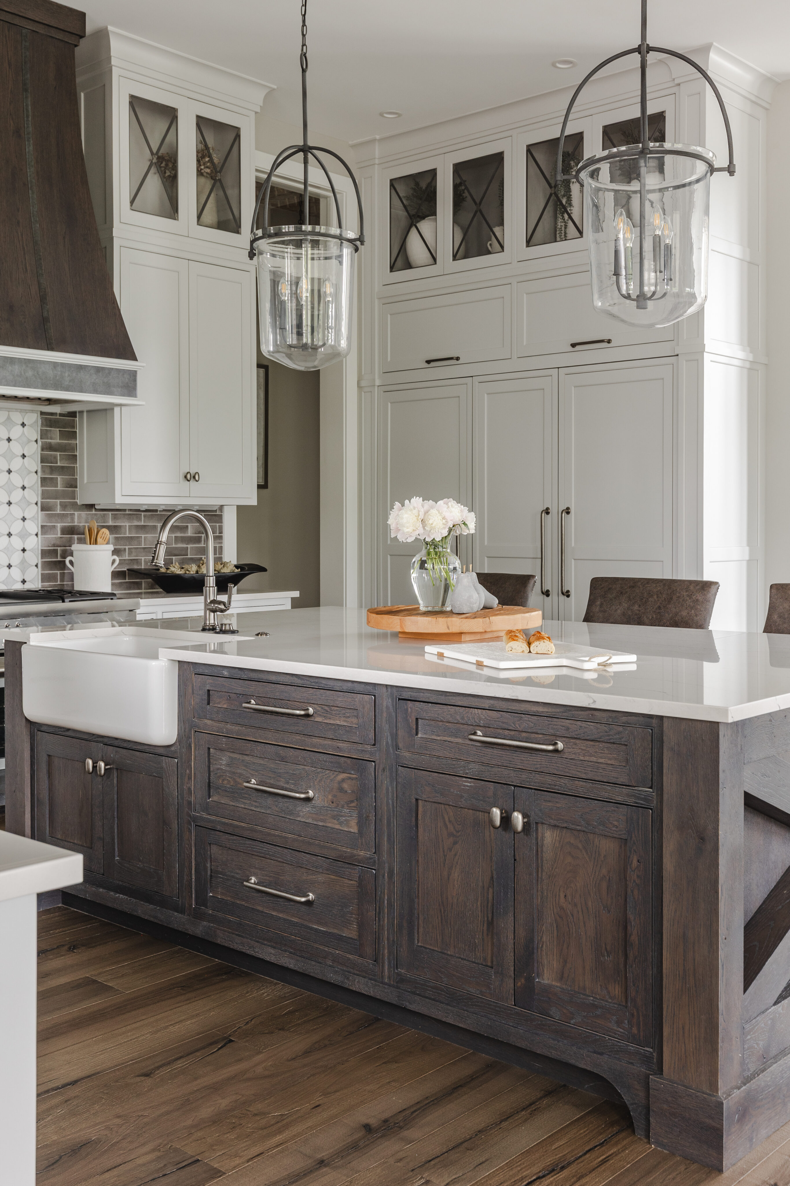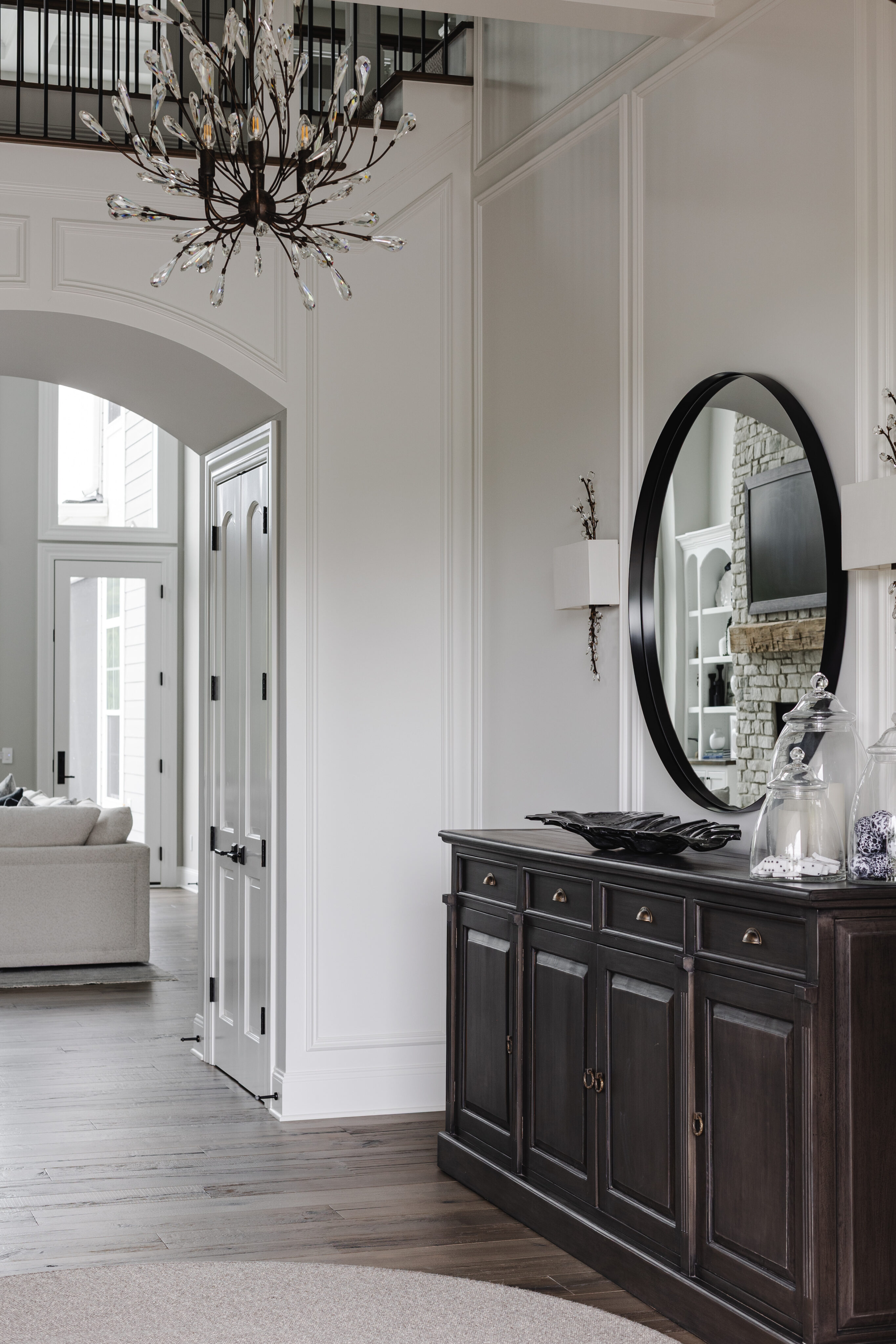 The goal was to create a home that feels like an older, established residence while incorporating updated, modern finishes. Although the home includes many rooms, the design maintains a cozy, welcoming atmosphere throughout.