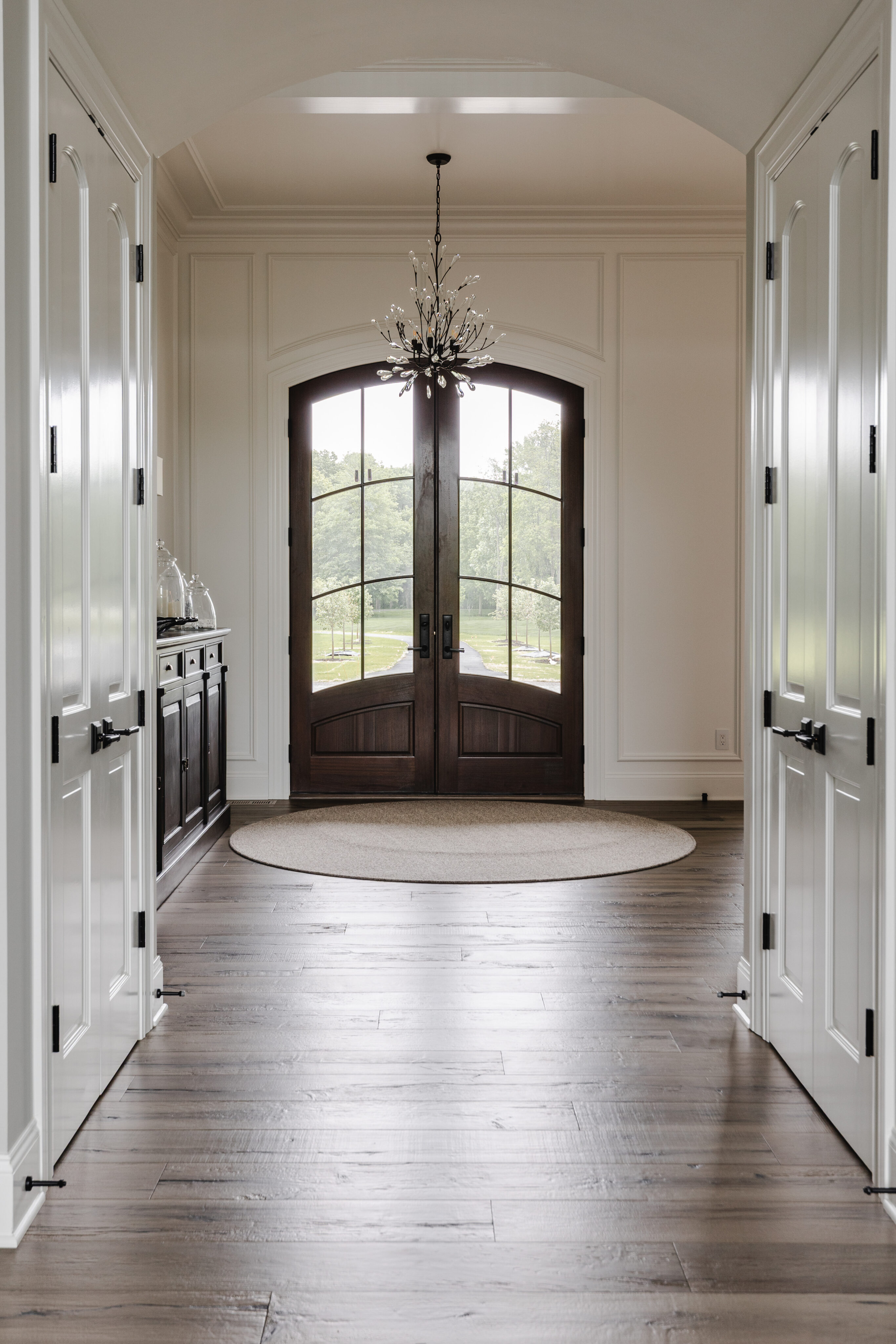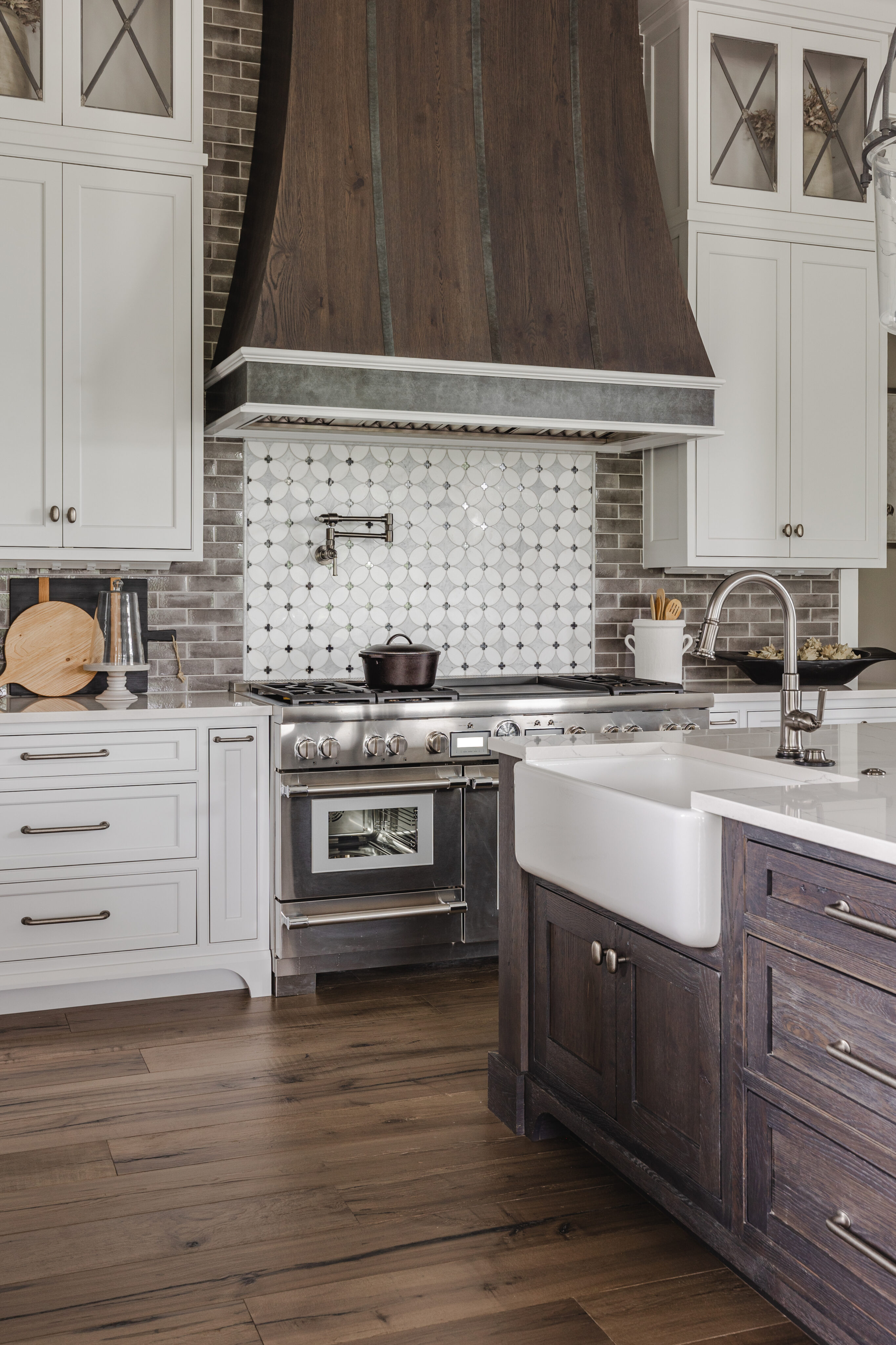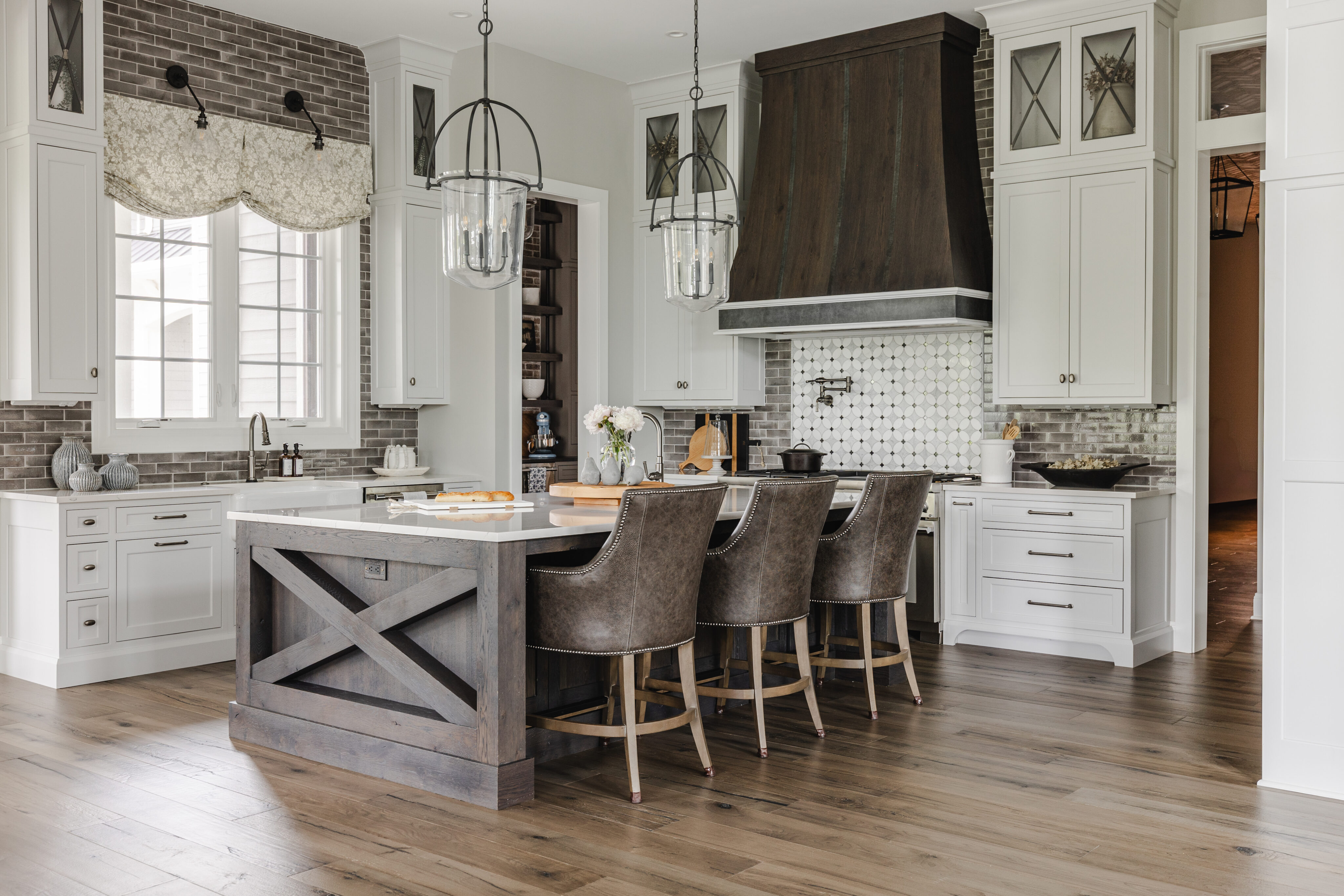 The goal was to create a home that feels like an older, established residence while incorporating updated, modern finishes. Although the home includes many rooms, the design maintains a cozy, welcoming atmosphere throughout.