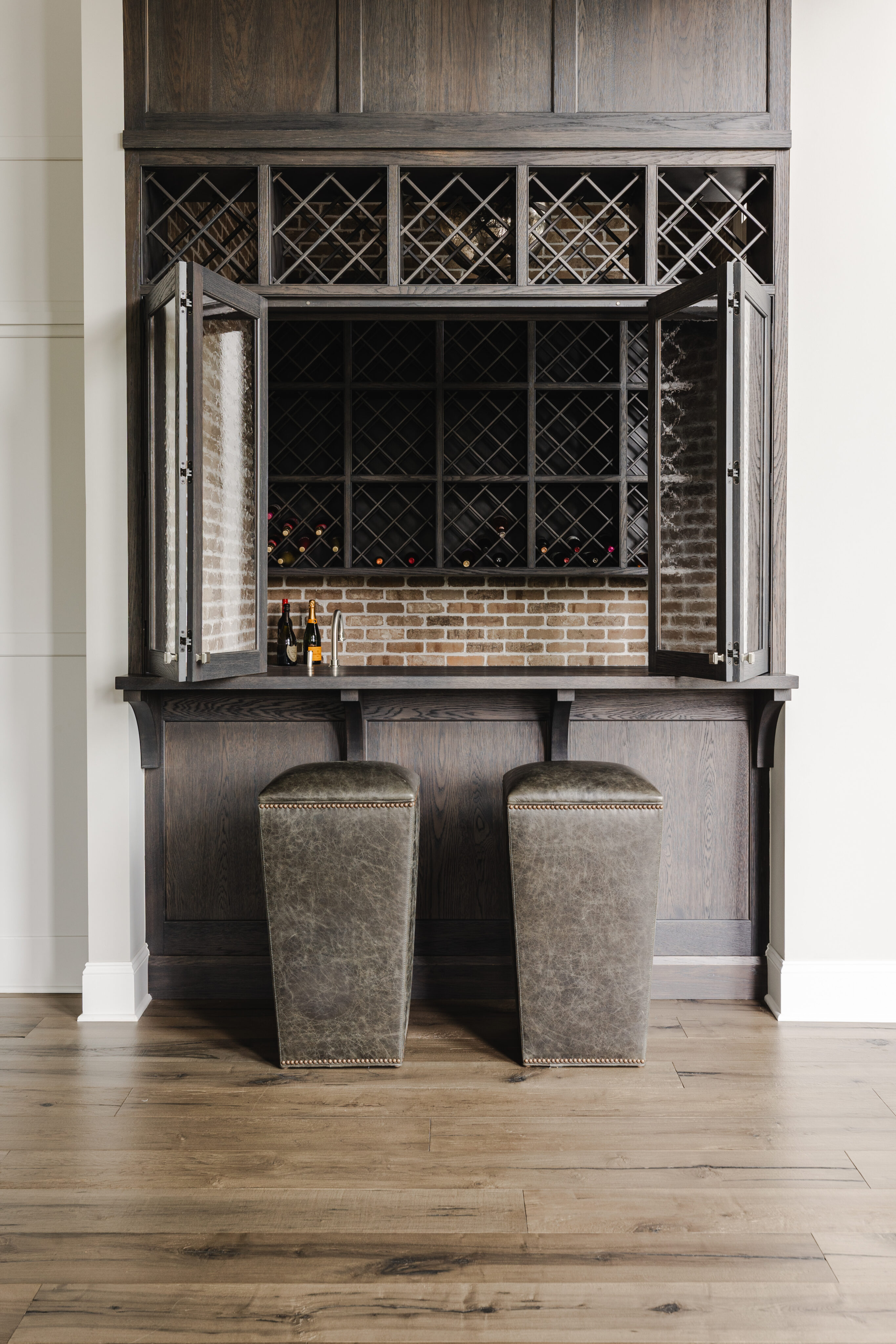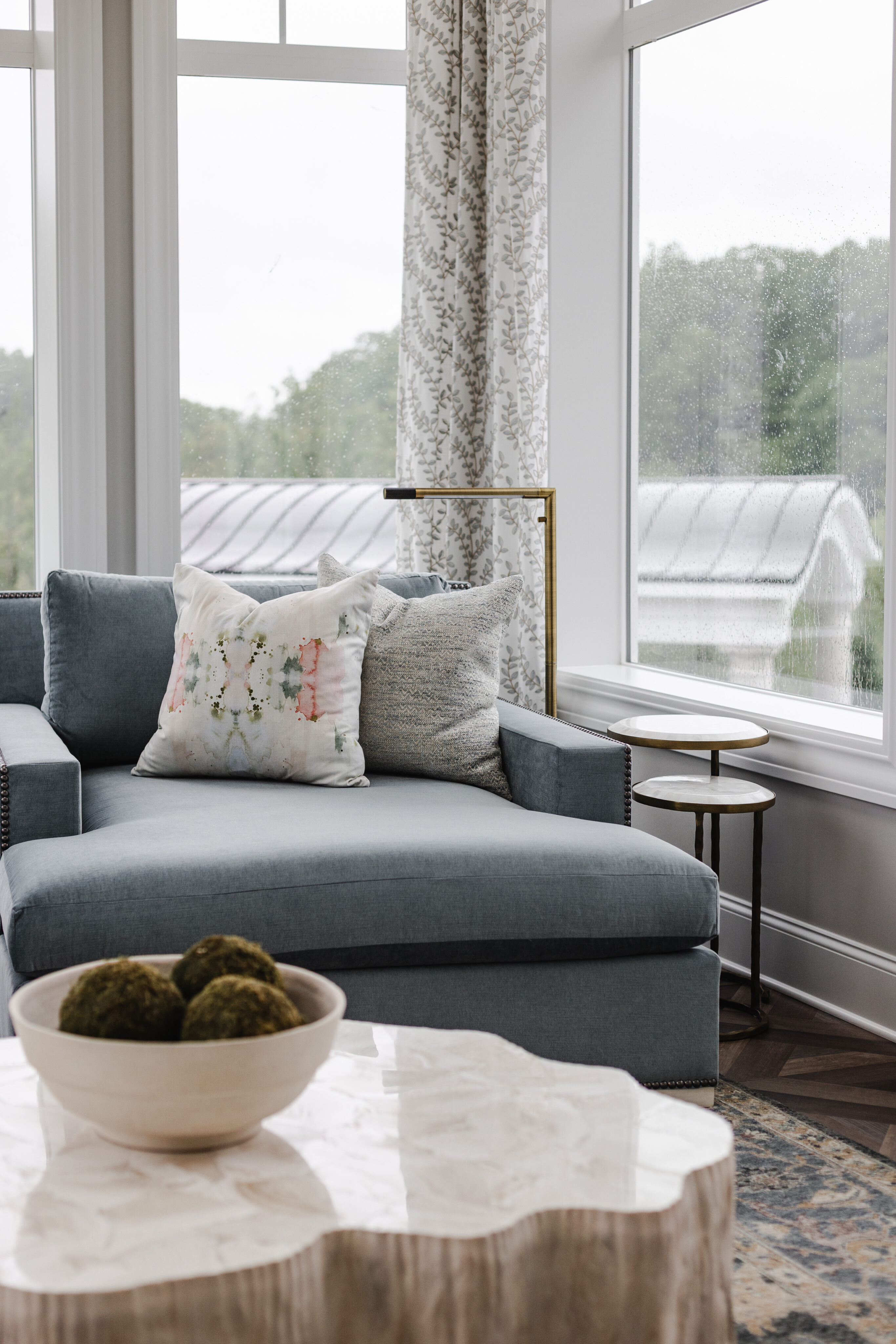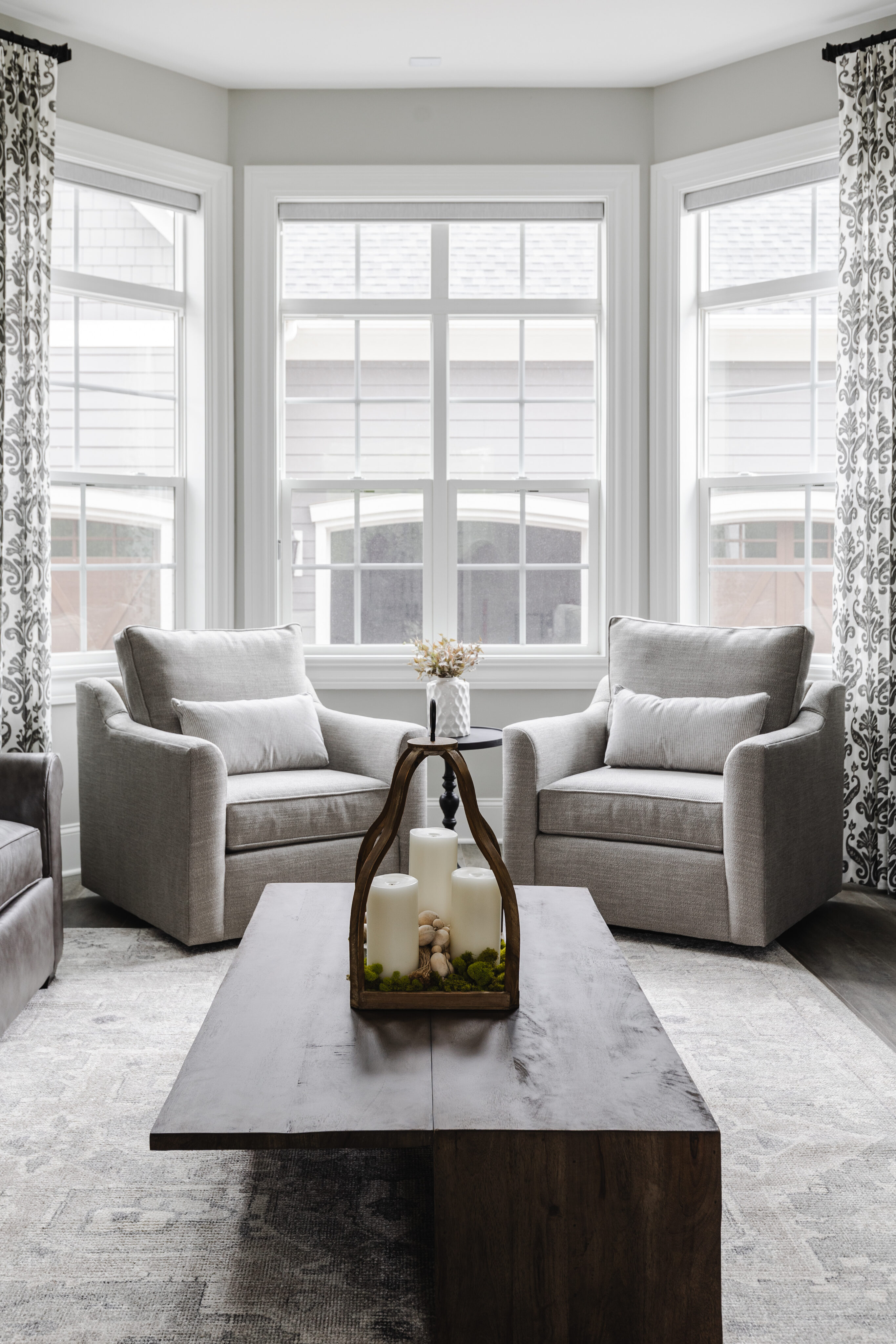 This family home blends warmth, comfort, and modern elegance across its expansive spaces. The clients envisioned a home that felt timeless—like it had been built years ago—but refreshed with modern finishes. From a custom kitchen with hidden appliances to cozy dining areas and a playful wine bar, every corner was designed for living and gathering. Emily designed a bright conservatory surrounded by windows, allowing the family to enjoy sweeping views of their beautiful property. As a household full of boys, Emily created a third-floor retreat with a feminine touch—a peaceful escape just for Mom. With a private guest suite, a stylish theater for movie nights, and thoughtfully layered outdoor spaces, the home feels both grand and inviting, perfectly reflecting the family’s personality at every turn.