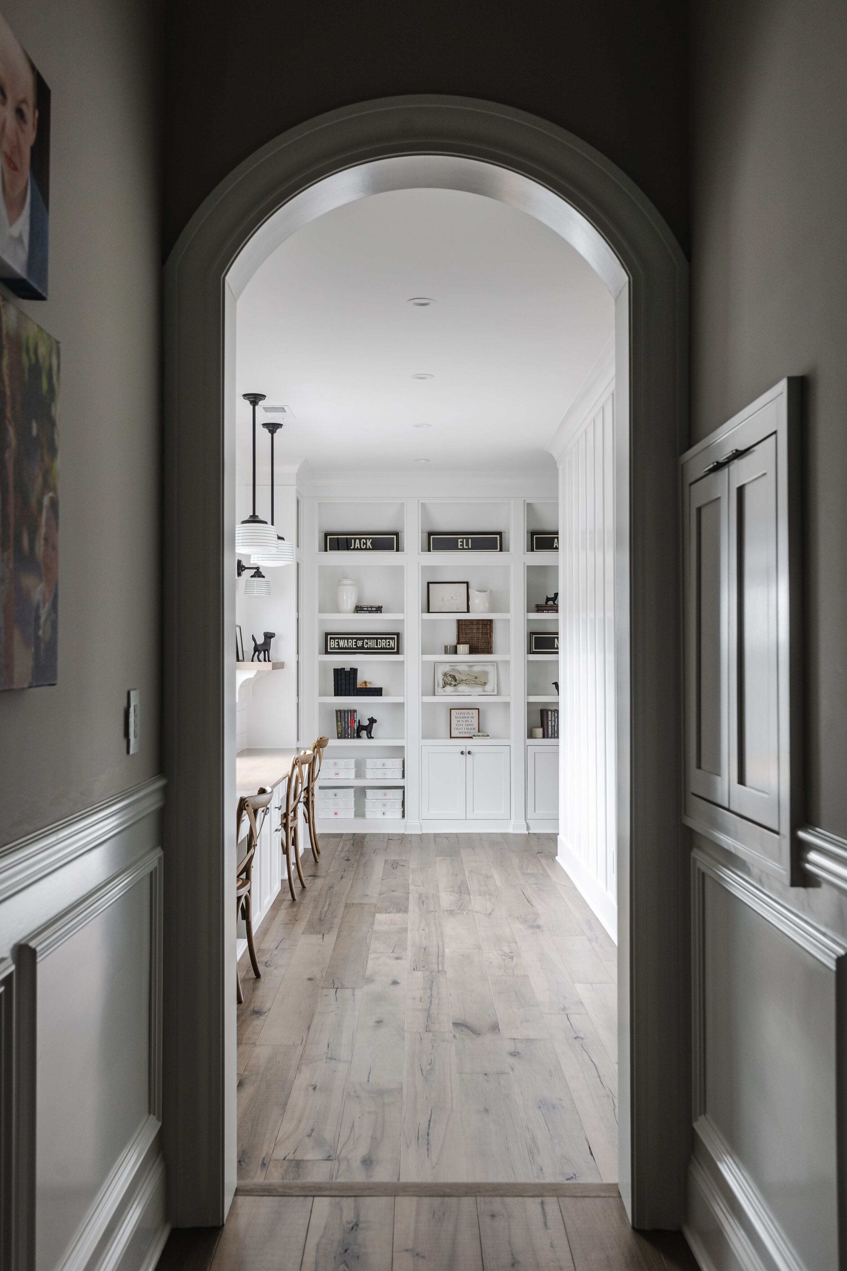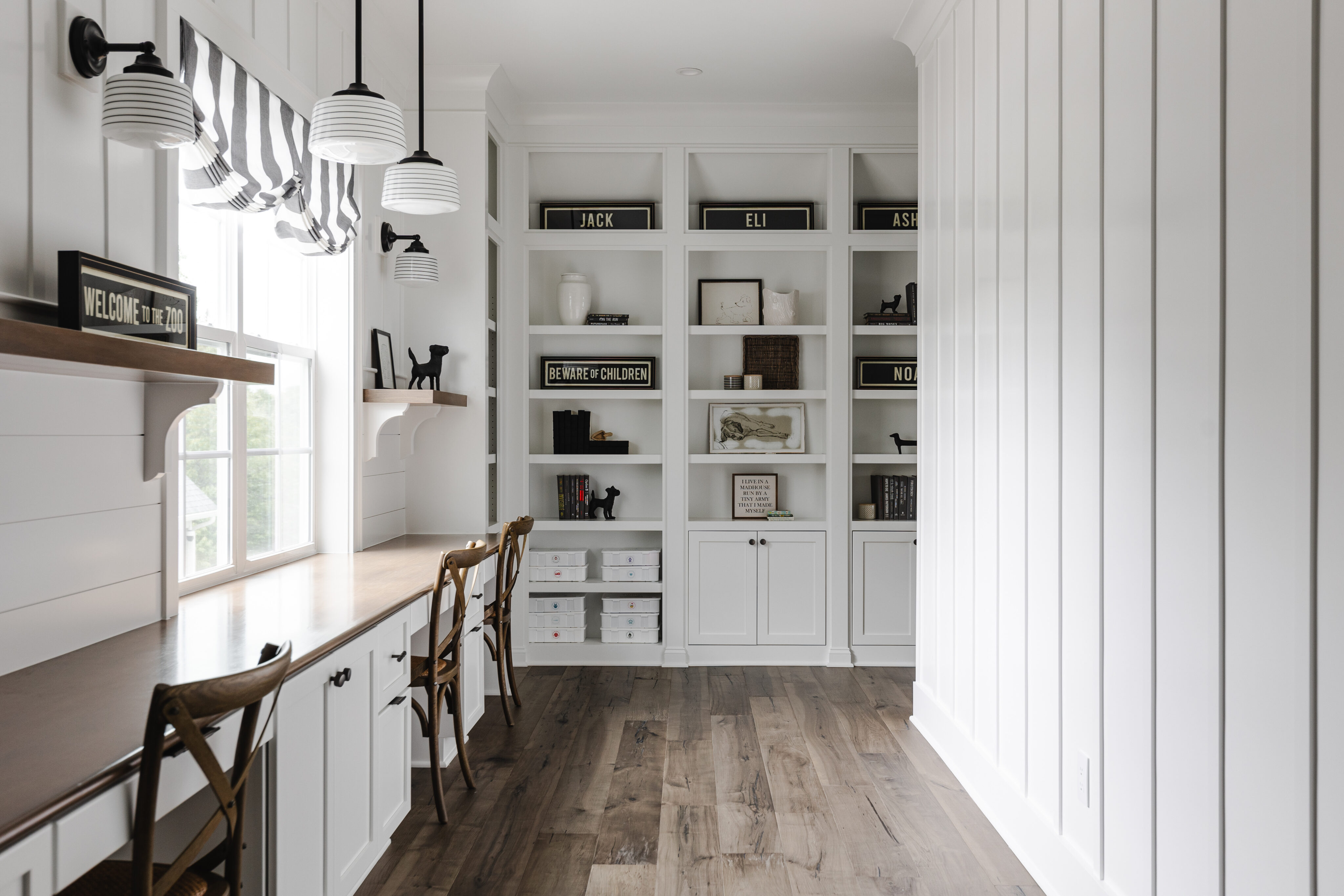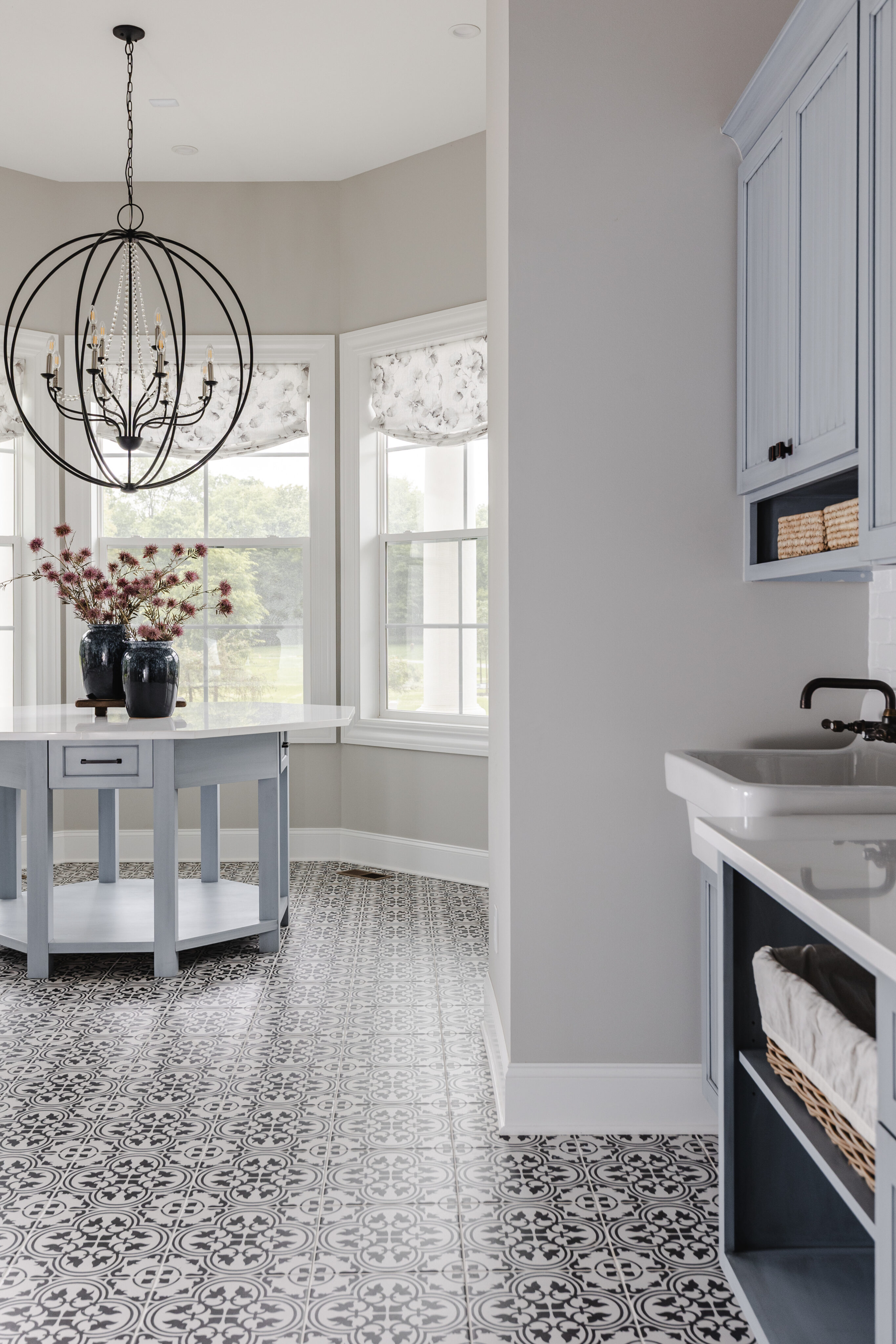 The project began with flooring and cabinetry selections, followed by bathrooms completed in phases. Given the size of the home, decisions were intentionally spaced out to avoid overwhelming the clients. Children’s rooms were designed to reflect each boy’s personality while still flowing with the rest of the home.