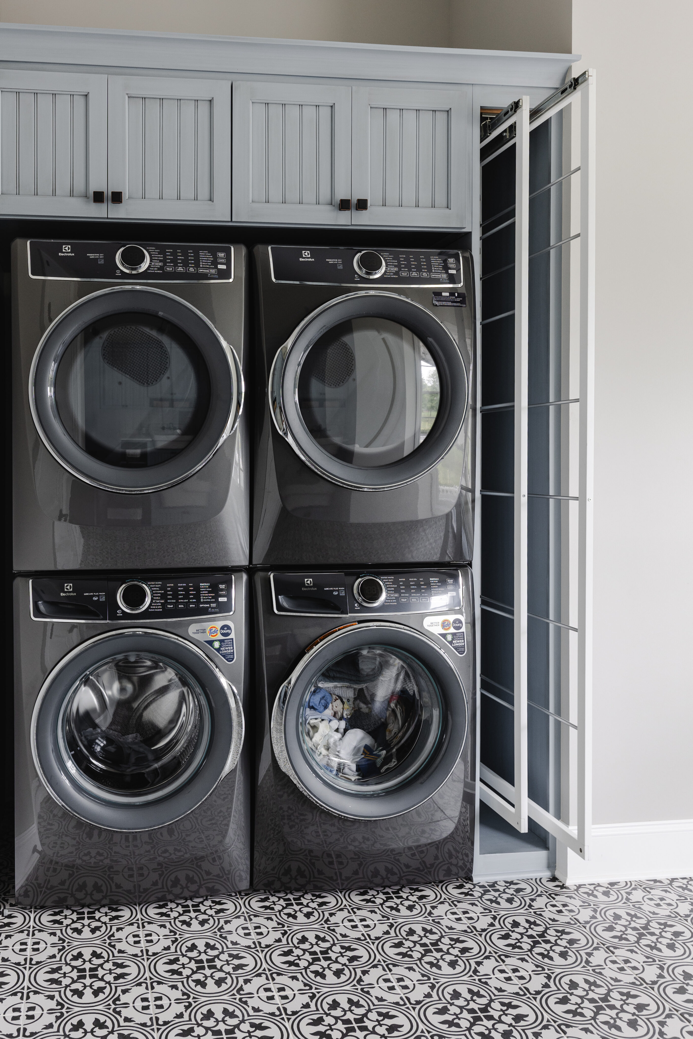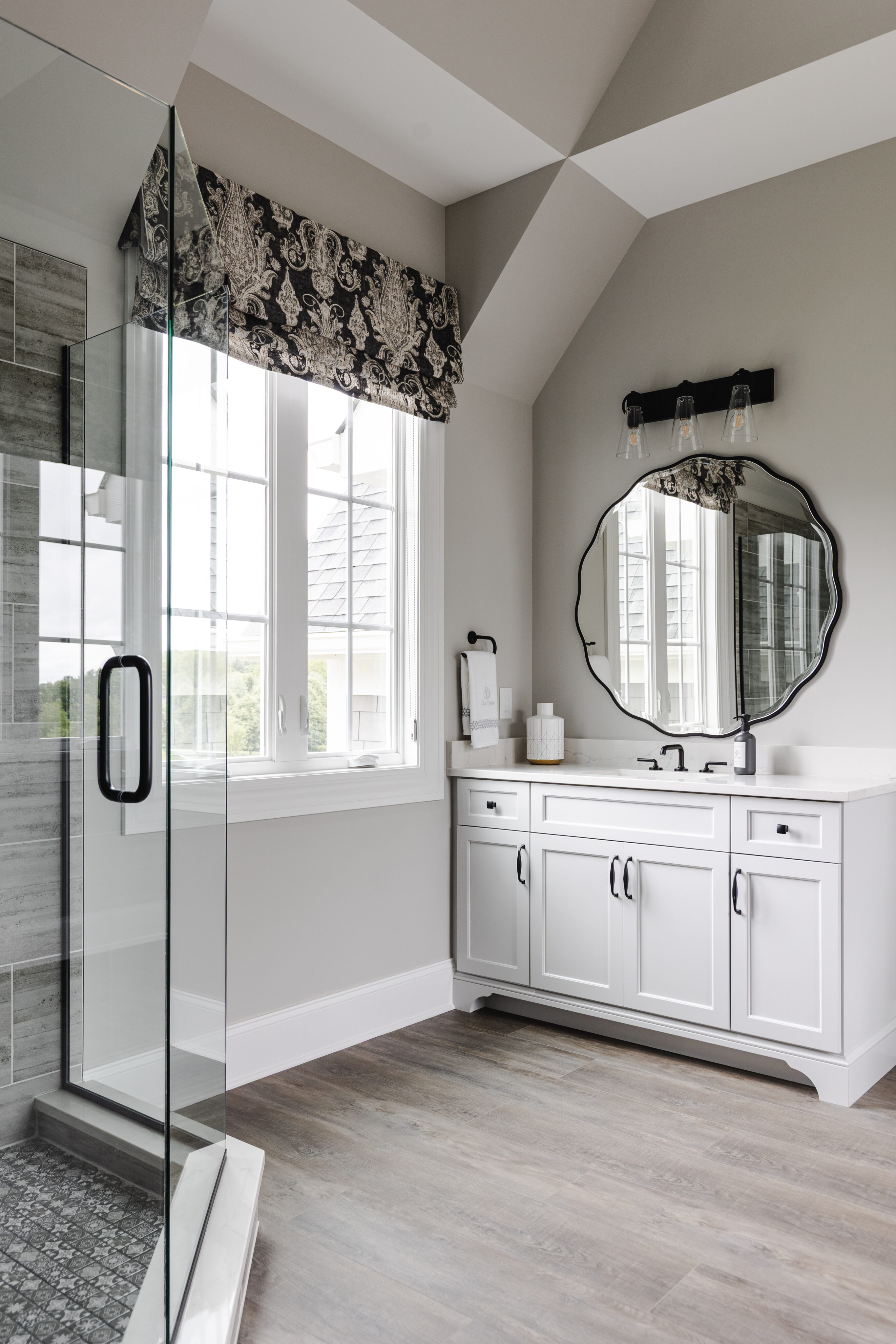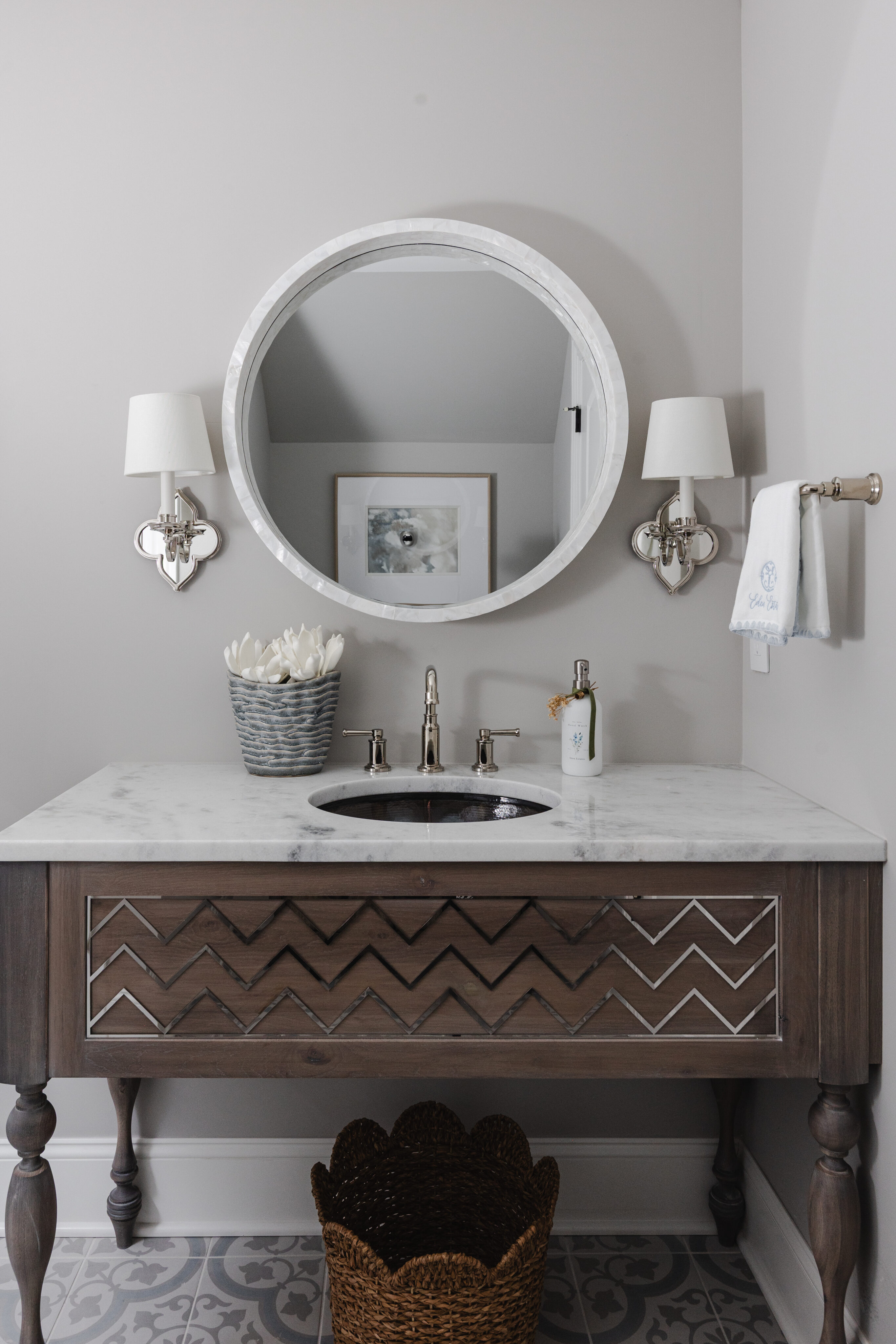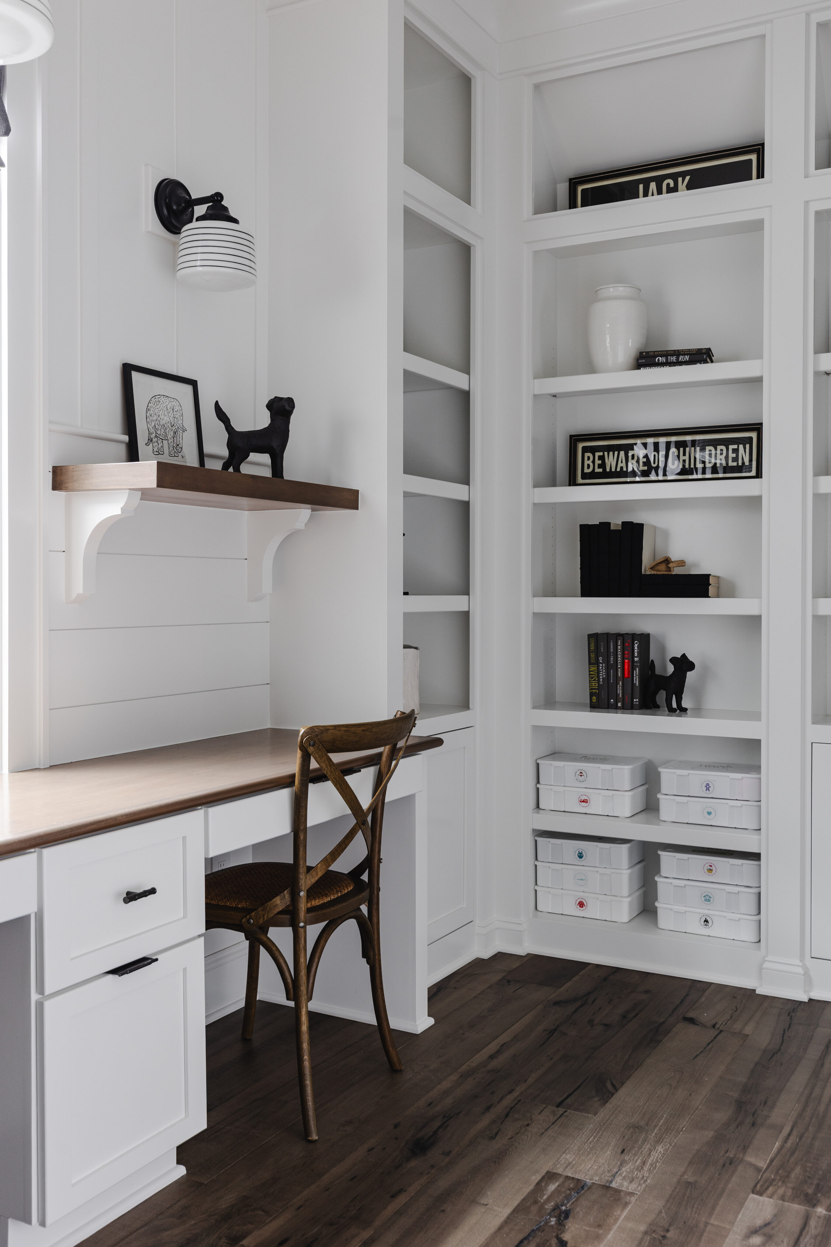 The project began with flooring and cabinetry selections, followed by bathrooms completed in phases. Given the size of the home, decisions were intentionally spaced out to avoid overwhelming the clients. Children’s rooms were designed to reflect each boy’s personality while still flowing with the rest of the home.