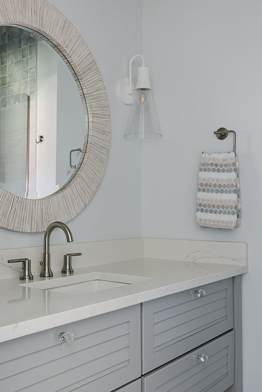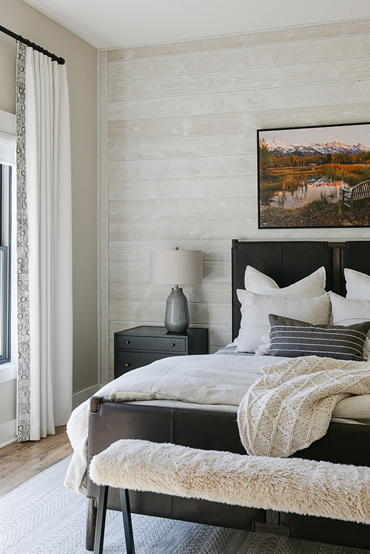 Primary Bath: 1x6 painted horizontal shiplap from floor to ceiling on ALL walls