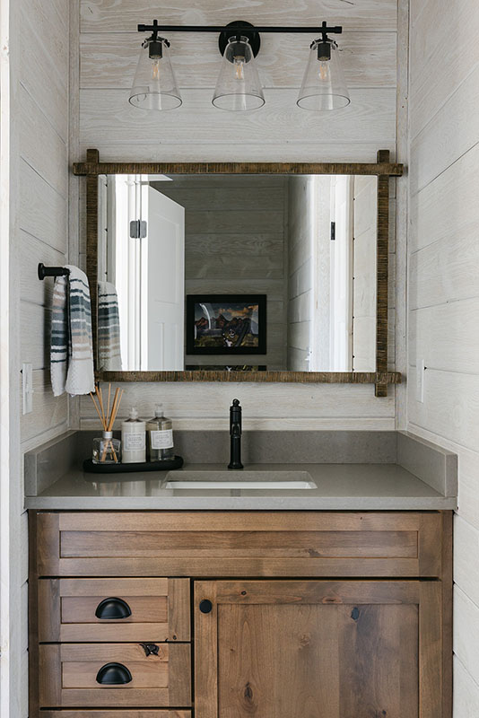 Powder Bath: 1x2 painted B & B from floor to ceiling/1x4 around the top; On ALL walls; Not on vanity wall