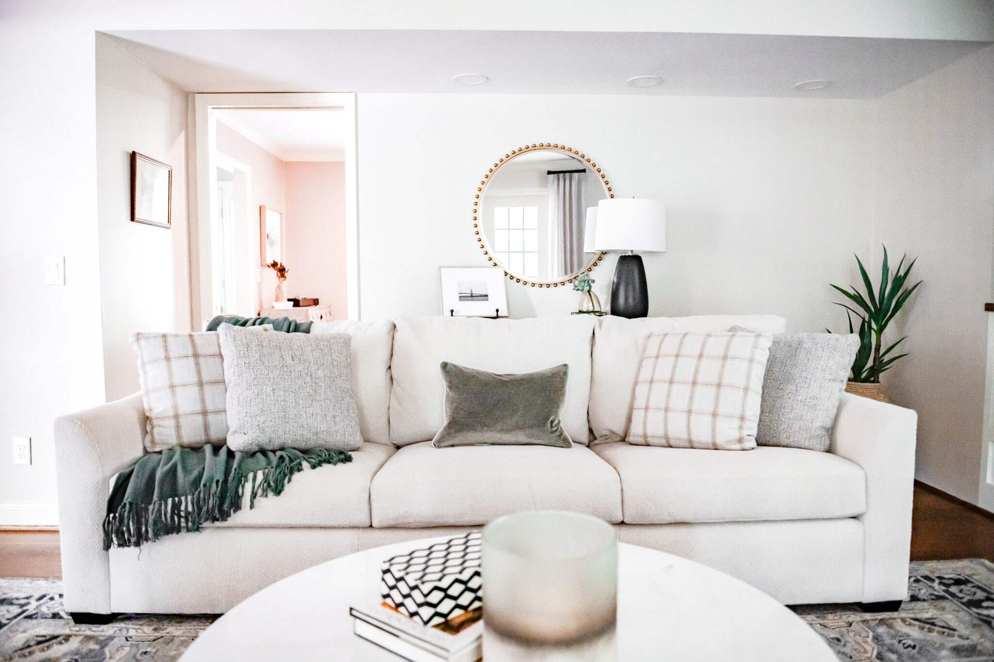 Chelsea’s performance fabric sofa in her home. This lovely space was designed by Michelle Sanders-Osborne.